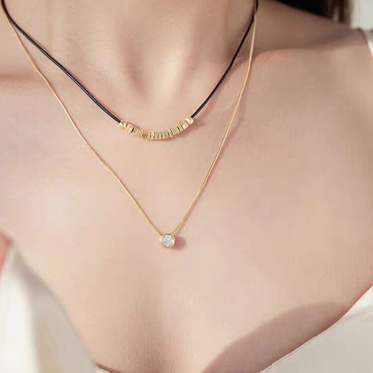 チョーカーとチェーンの2連なら、これ一つ着けるだけで今時を演出できます。