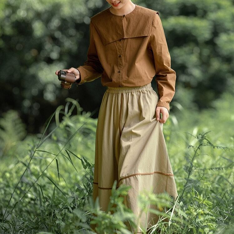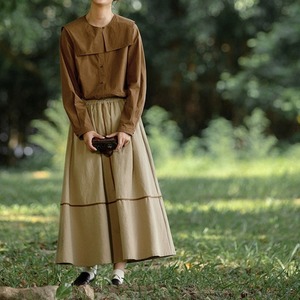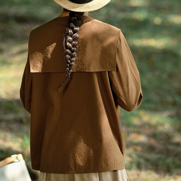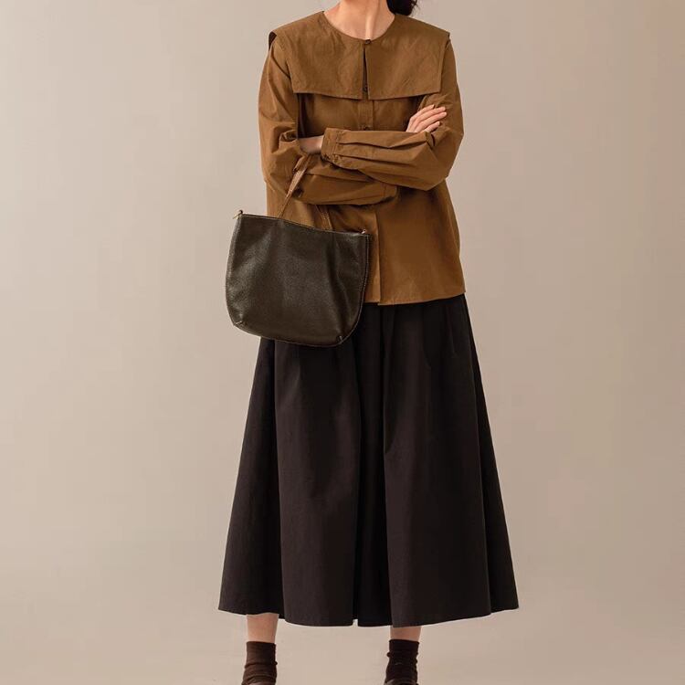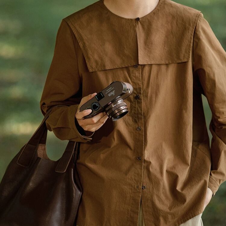 大きめなスクエアカラーですが、ブラウンの色のため、甘さを抑えてシックな雰囲気です。
