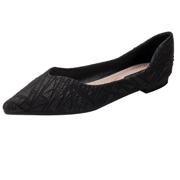 ポインテッドトゥと甲のV字カットで、足をすっきりと細く見せてくれます。