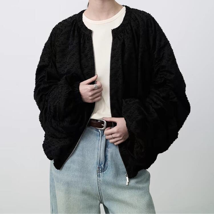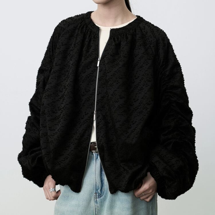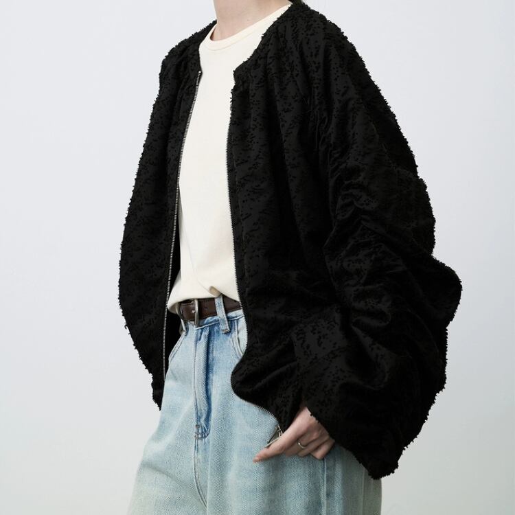 カットジャガード素材が独特の表情を醸し出す一着です。