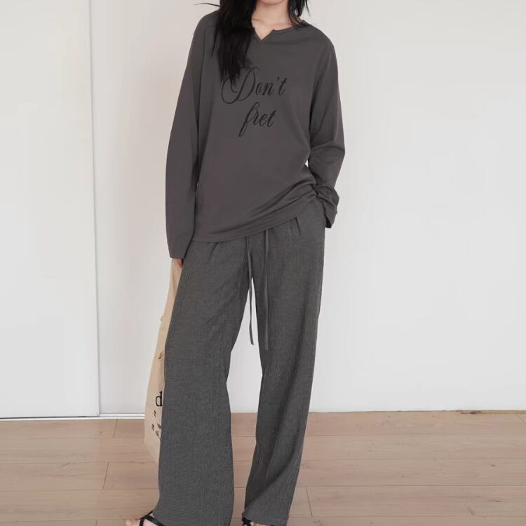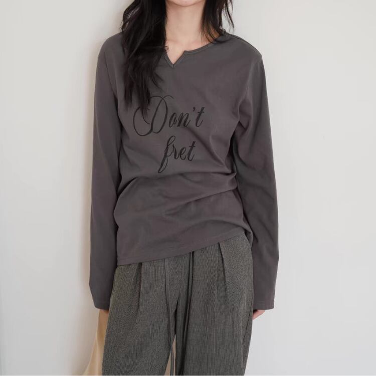 洗練されたフォントの英字がおしゃれに映り、爽やかな印象で着ていただけます。
