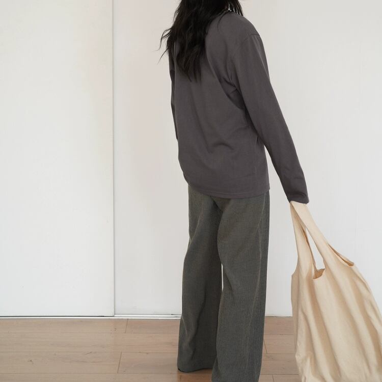 絶妙な開きの襟元で着やすく、キーネックがシンプルな型のアクセントになっています。