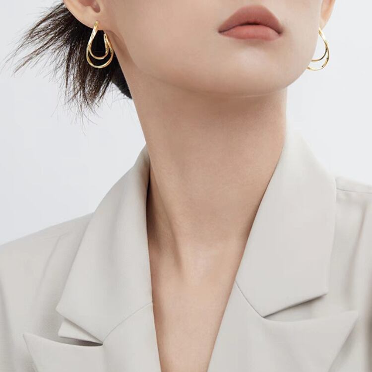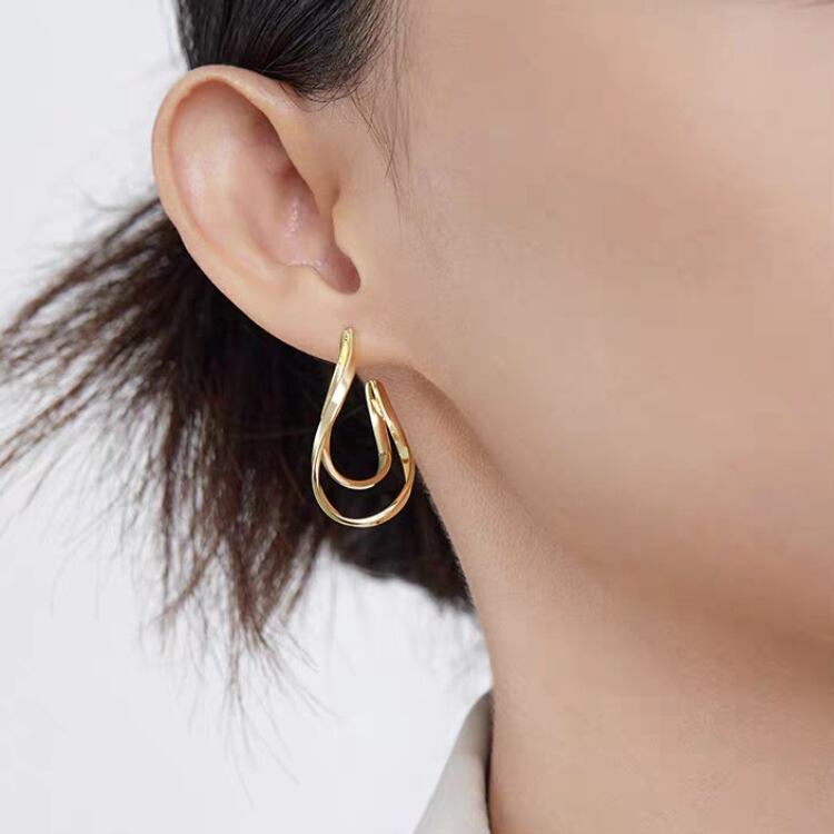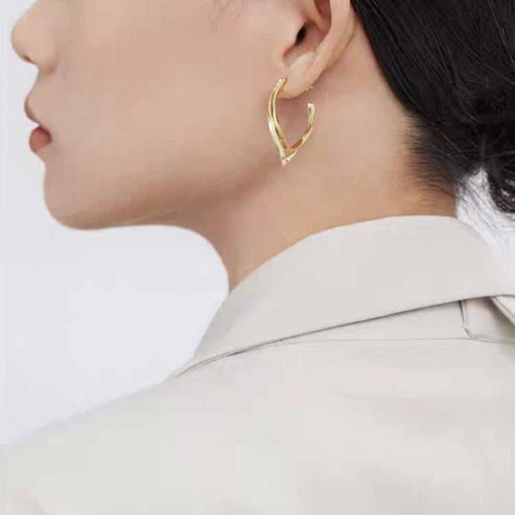 曲線とねじれにより光が乱反射して、耳元をきらびやかに彩ります。