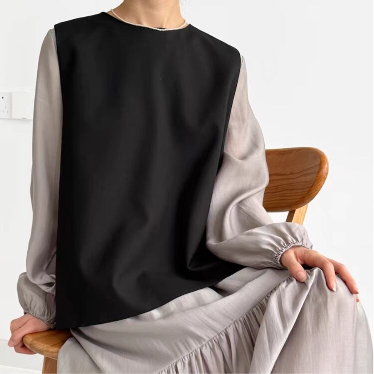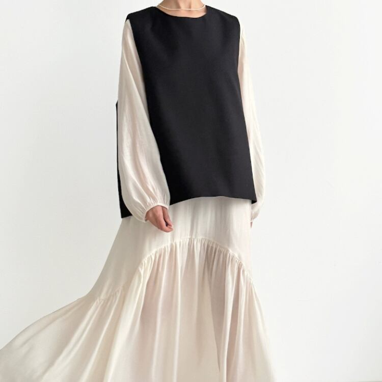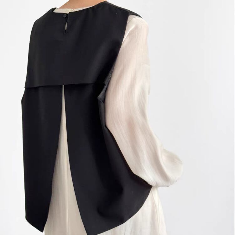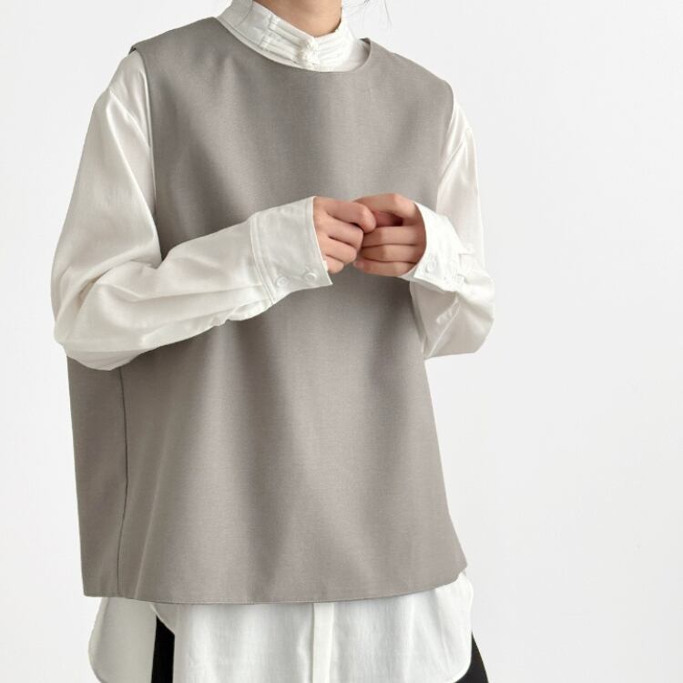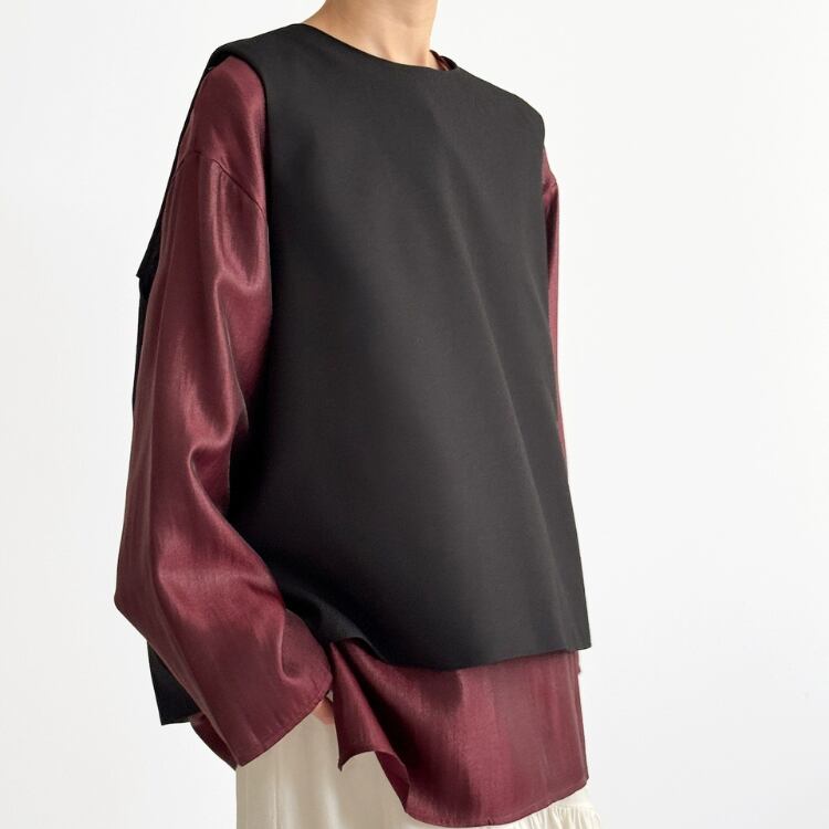 バックレイヤードスリット布帛プルオーバーベスト 0652