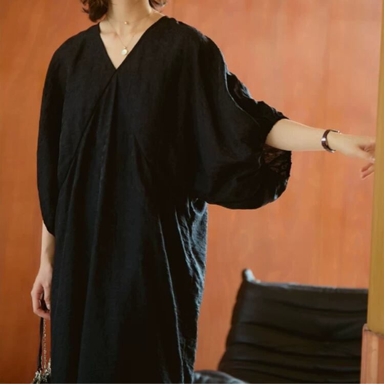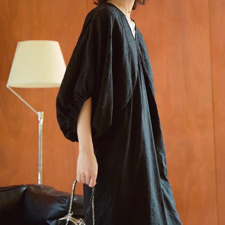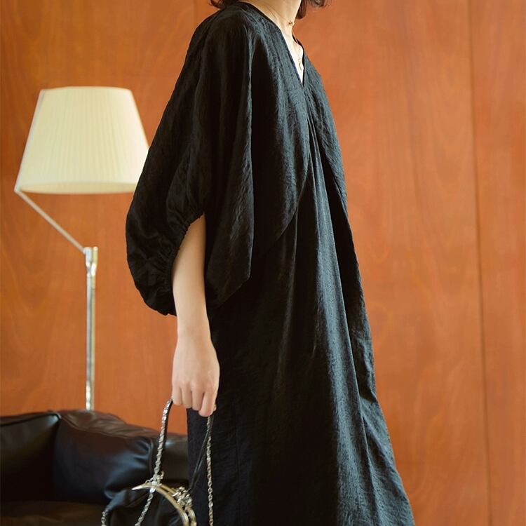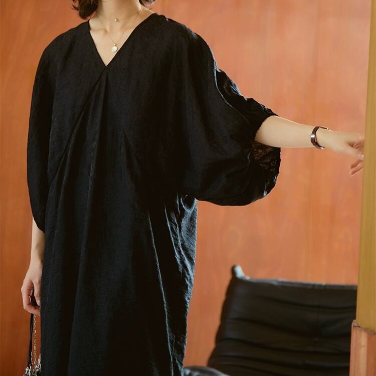 Vネックドルマンスリーブジャガードワンピース 0677
