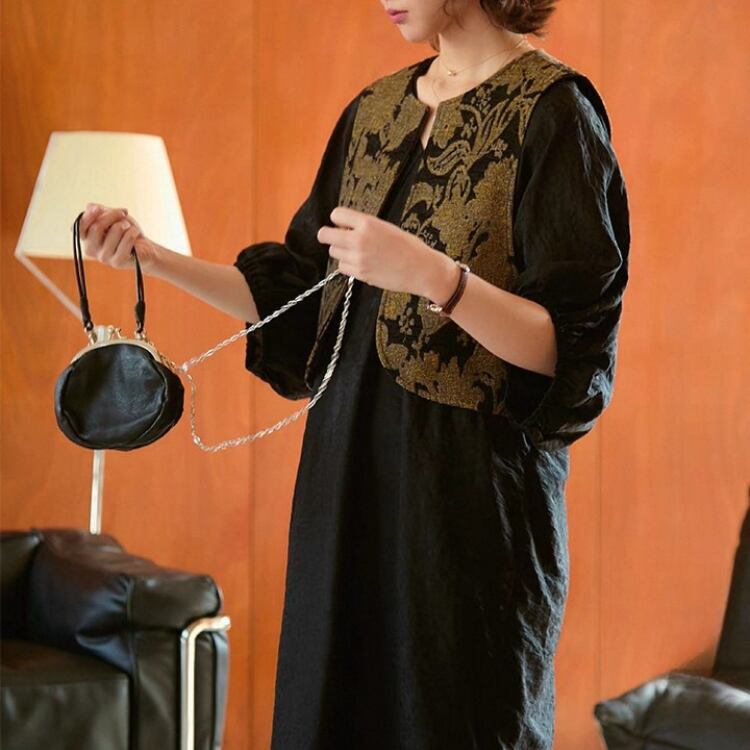 ほんのり透けるシアー生地で、細かい植物のジャガード柄がシックな印象のワンピース。