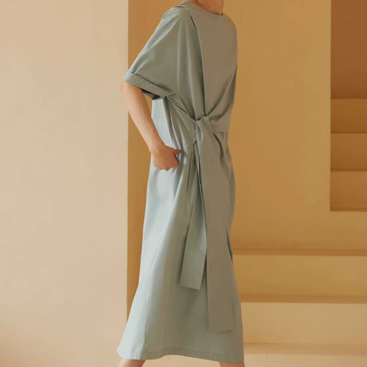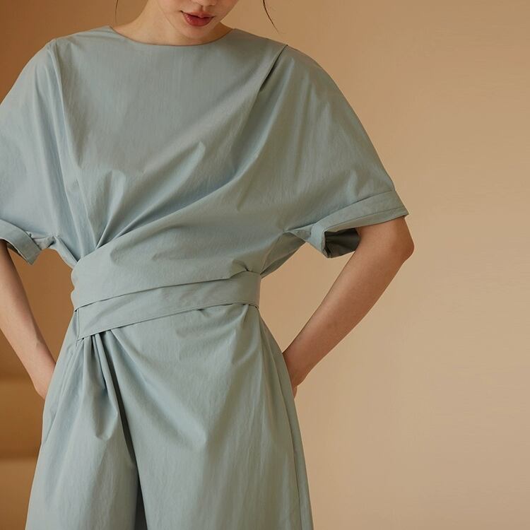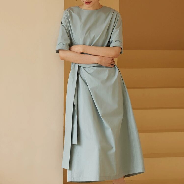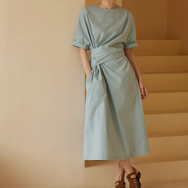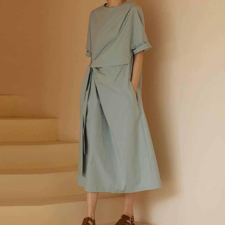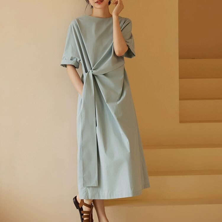 アシンメトリーウエストリボンAラインワンピース 0683