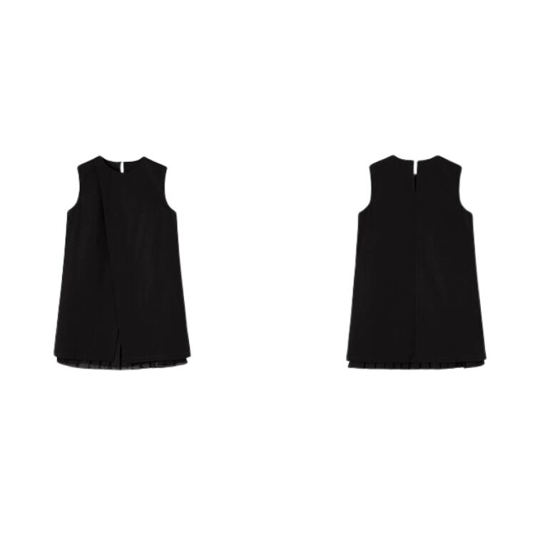 共のプリーツを合わせて、レイヤードスタイルがおしゃれなワンピースとしても楽しめる2WAY仕様です。