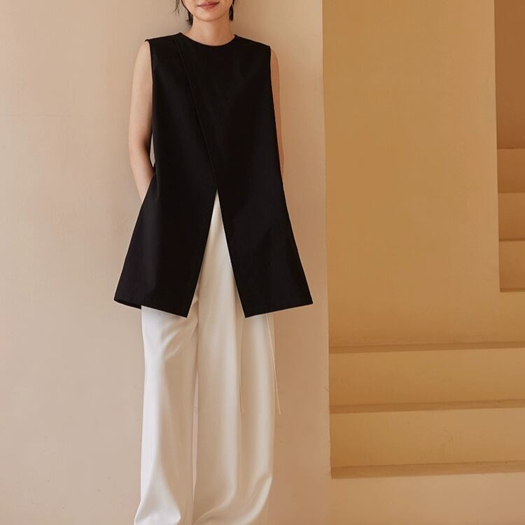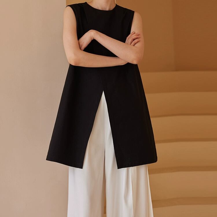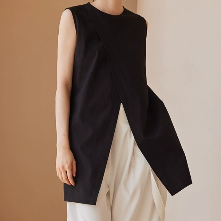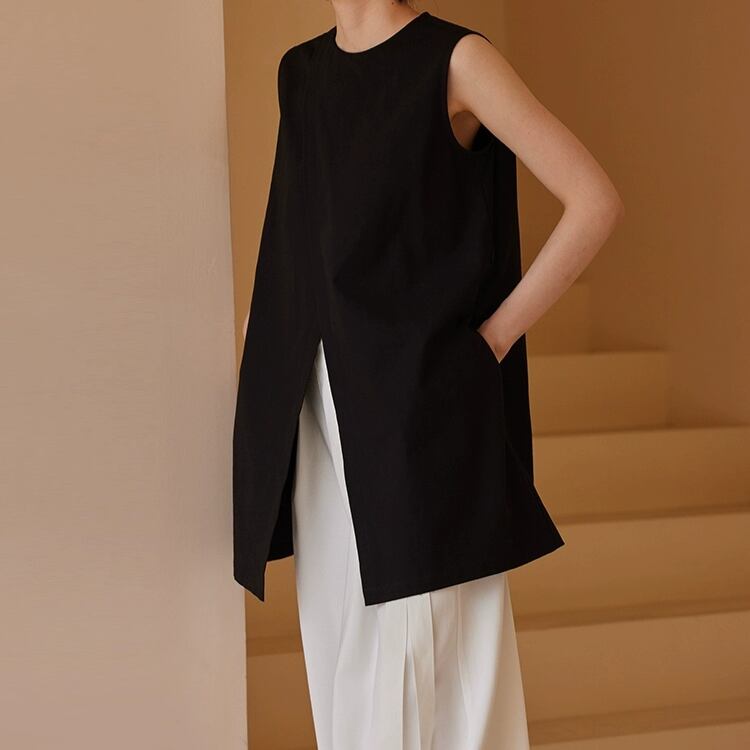 2WAYブラウス兼ワンピースフロントスリットノースリーブチュニック 0700