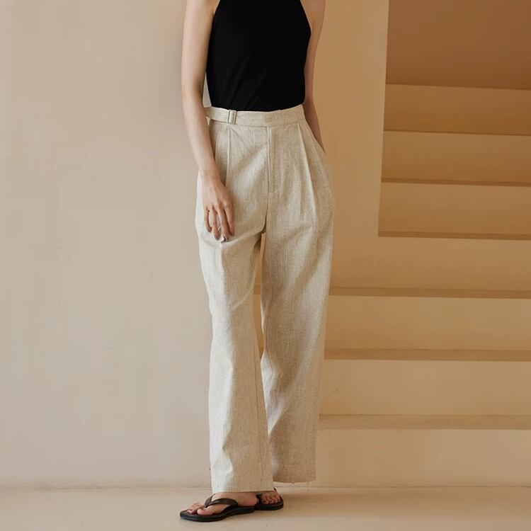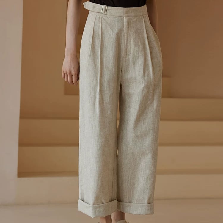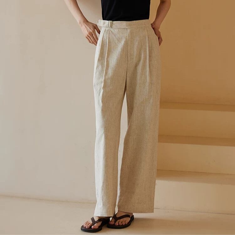 片サイドベルト付きツータックワイドストレートパンツ 0713