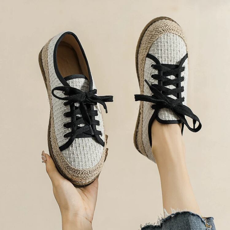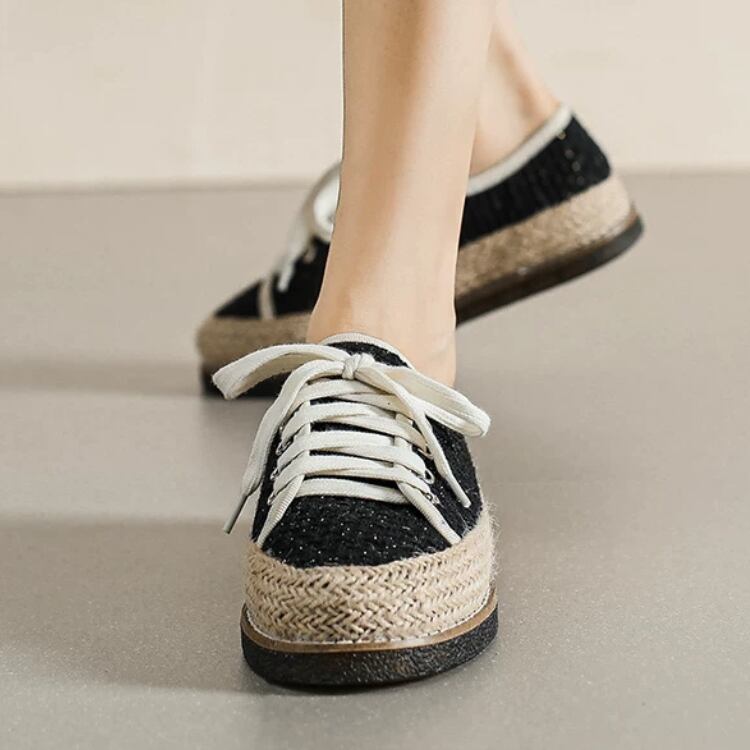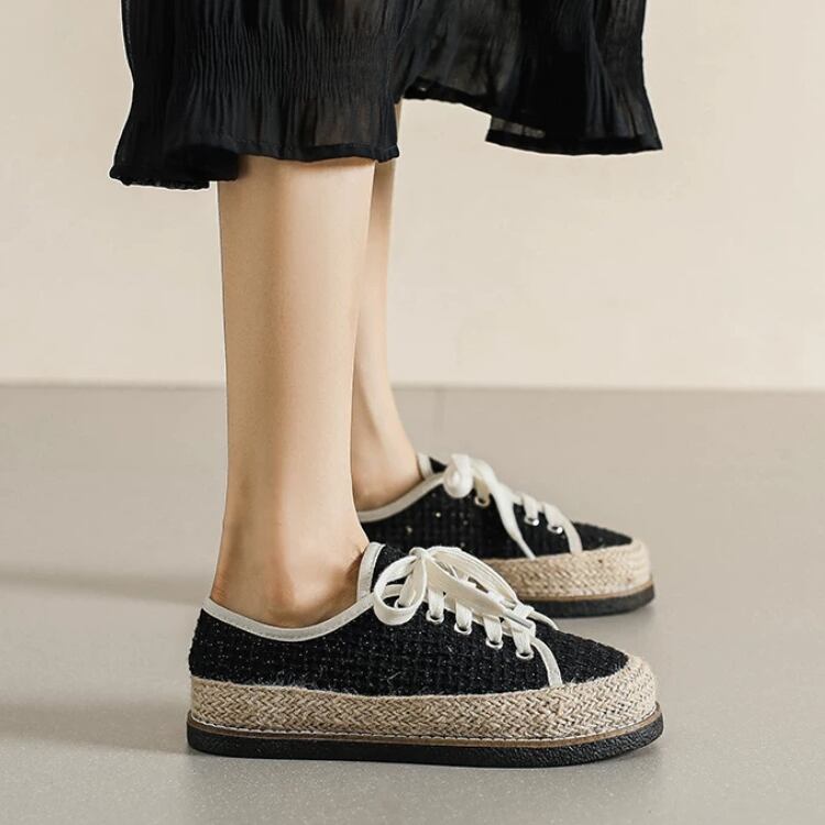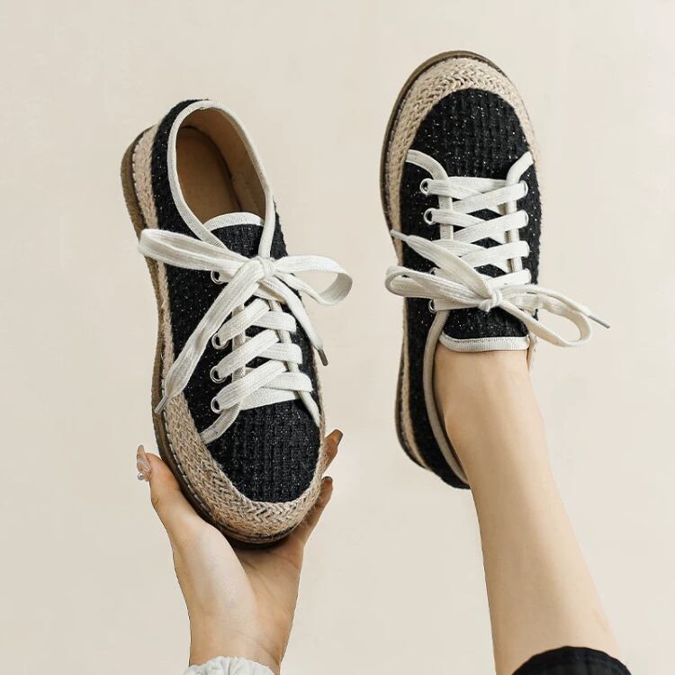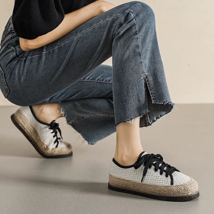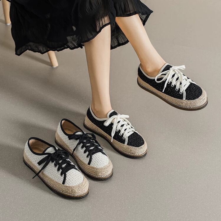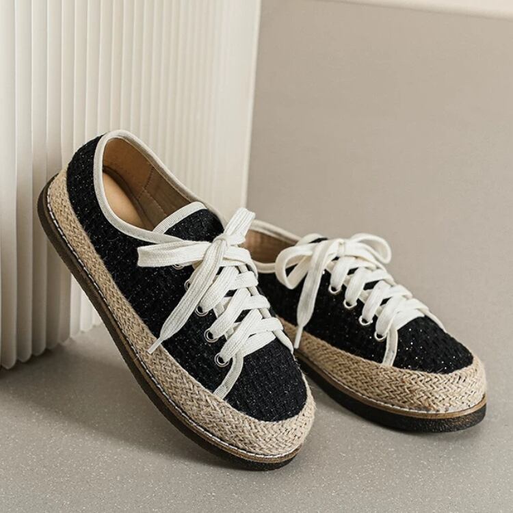 ツィード生地やジュートを使用したスニーカー型のシューズです。
