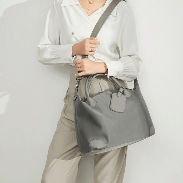ハンドルのほかに付属の長いストラップを付けて、ショルダーバッグとしても使える便利なデザインです。