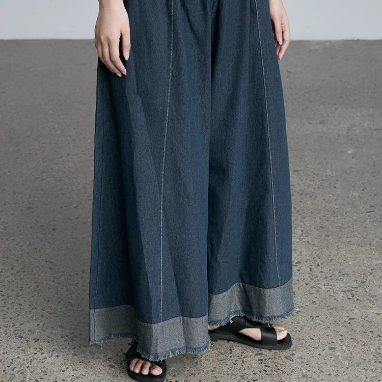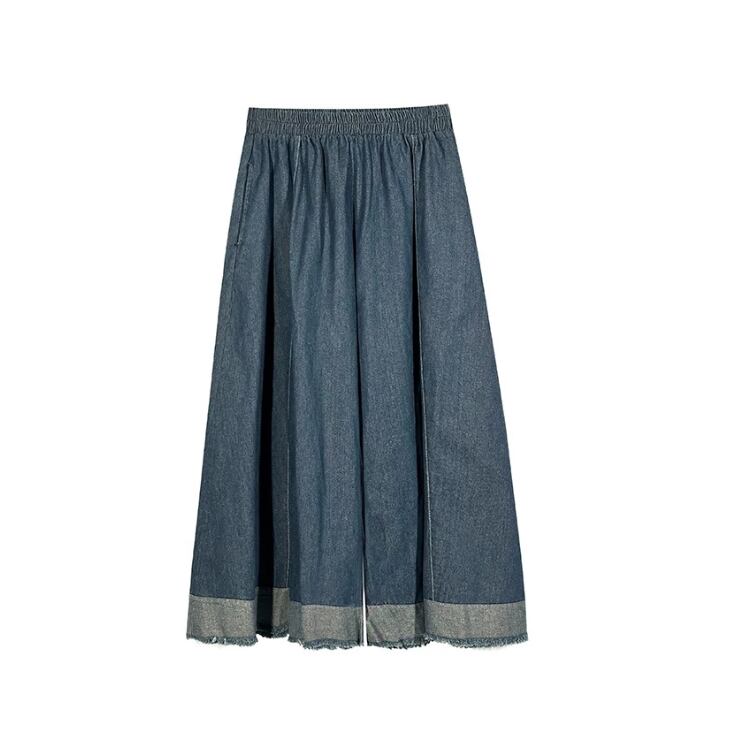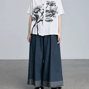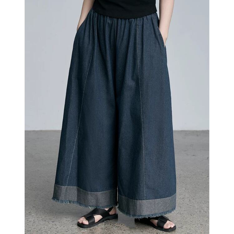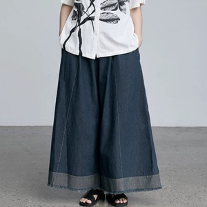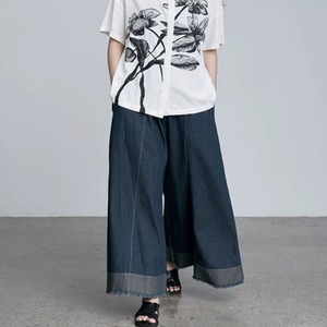 ウエストギャザー裾切り替えカットオフガウチョパンツ 0793