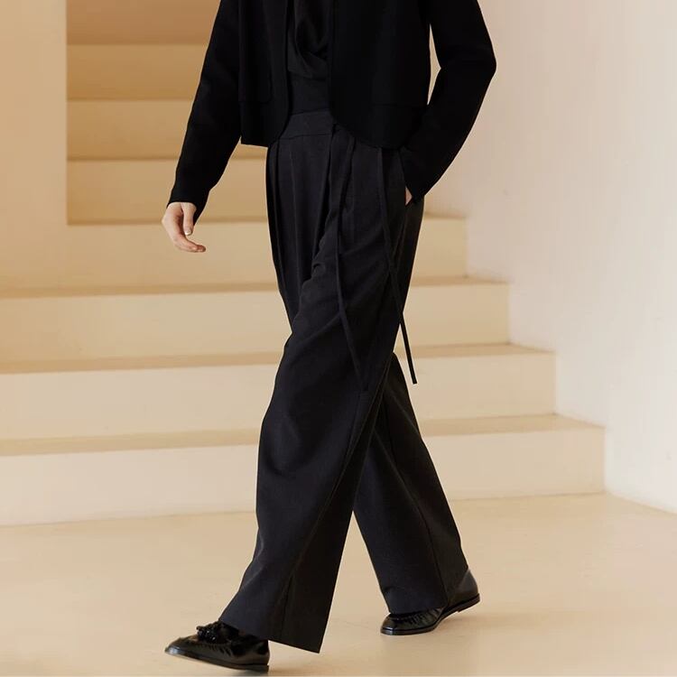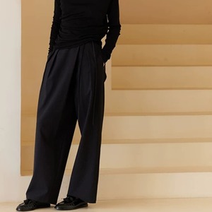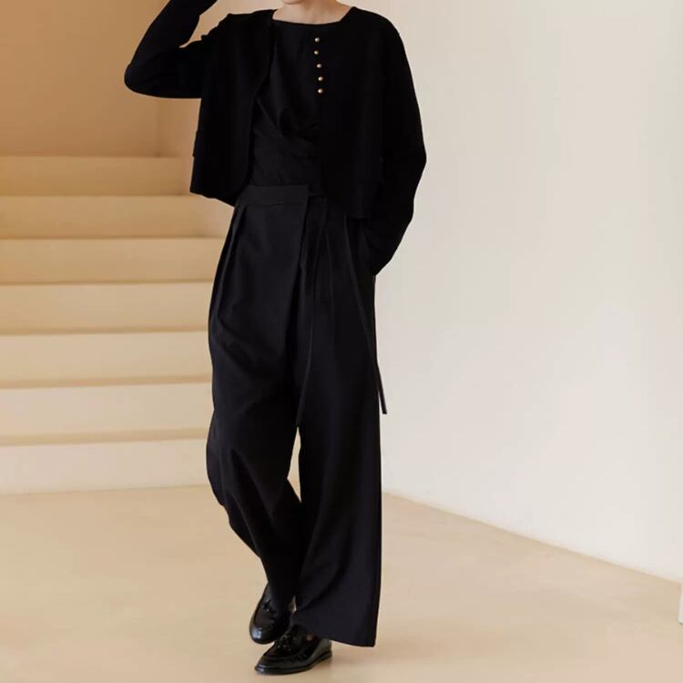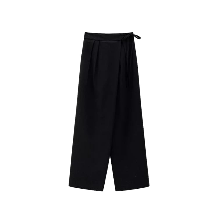 フロントのジッパーを隠すラップデザインが、シンプルなスタイルにモードなアクセントをプラスします。