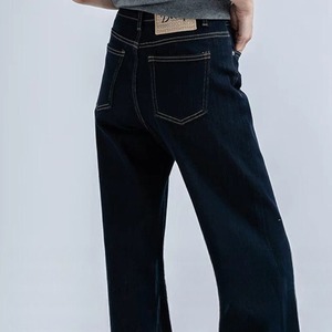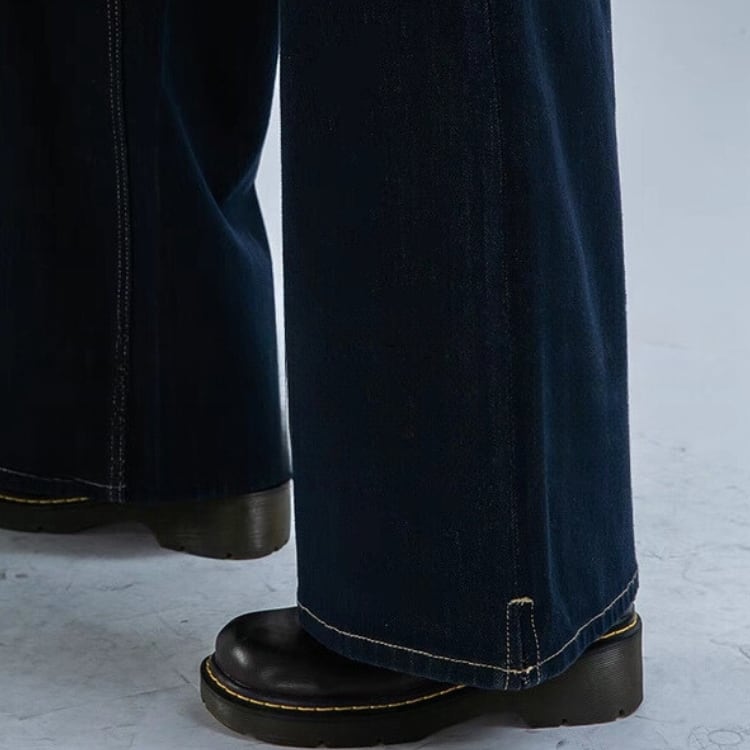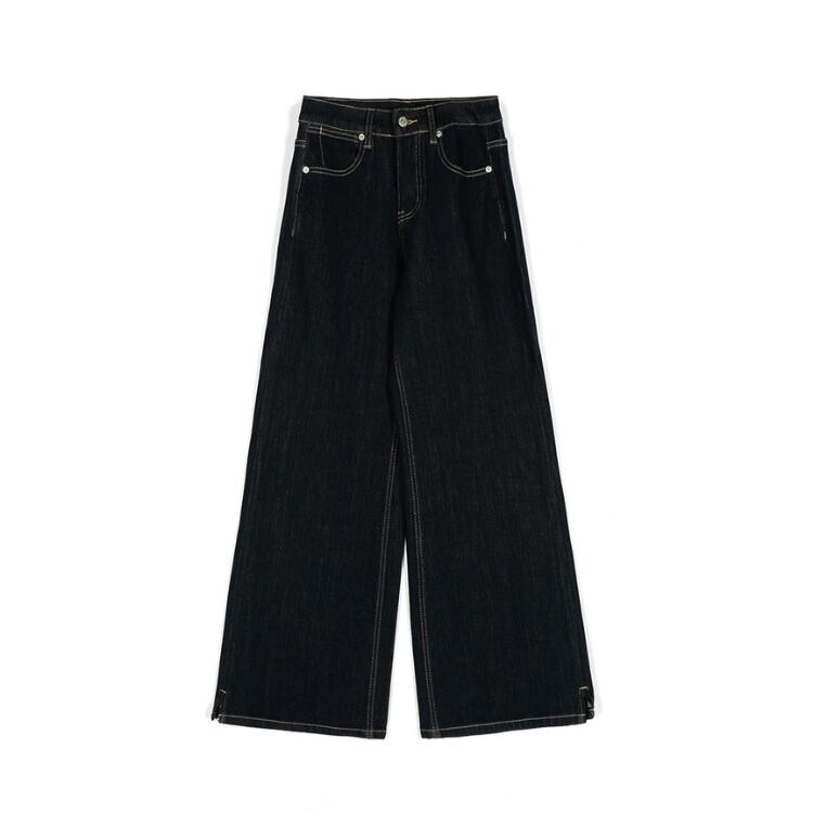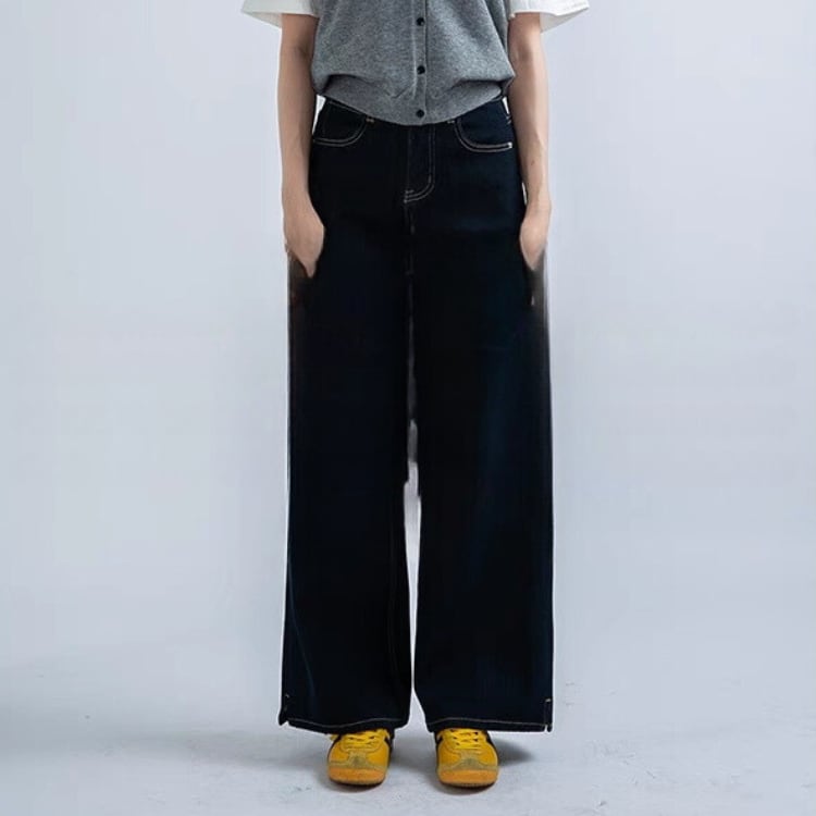 裾サイドスリットワイドストレートデニムパンツ 0807