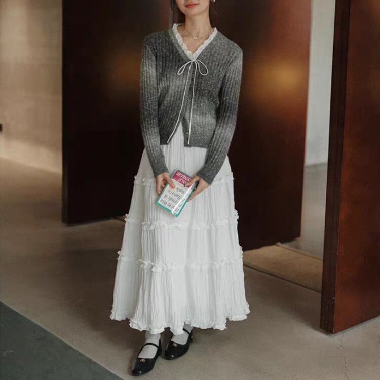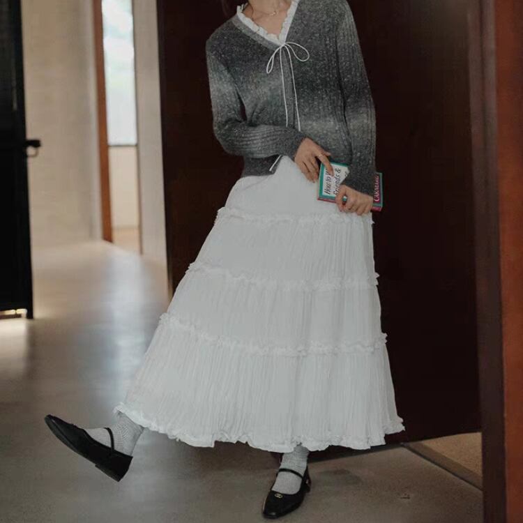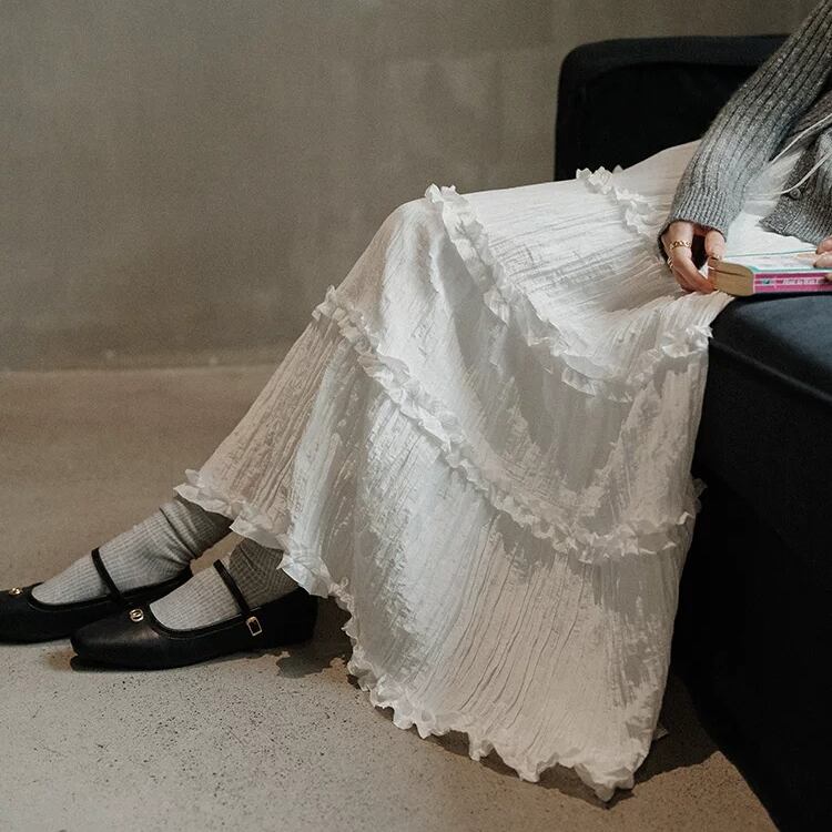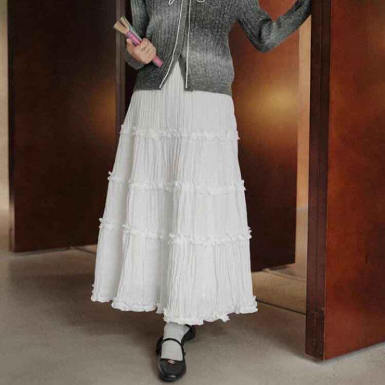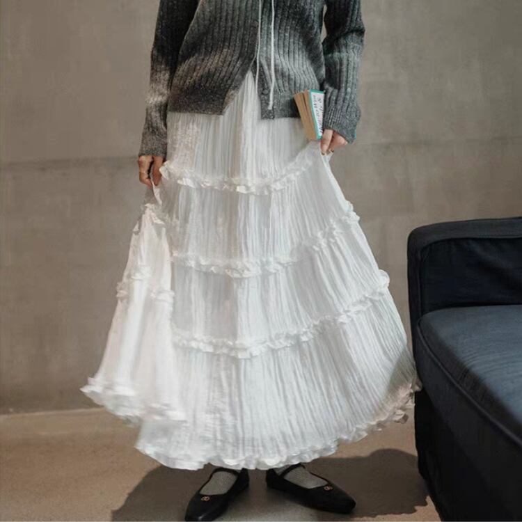 ワッシャー生地フリルティアードフレアースカート 0821