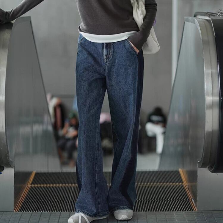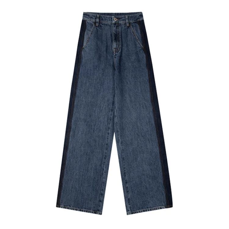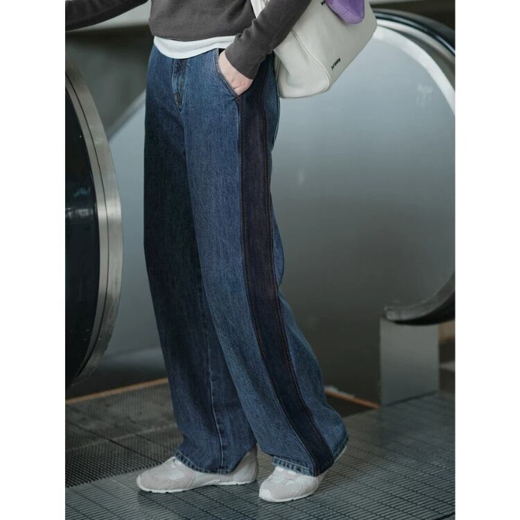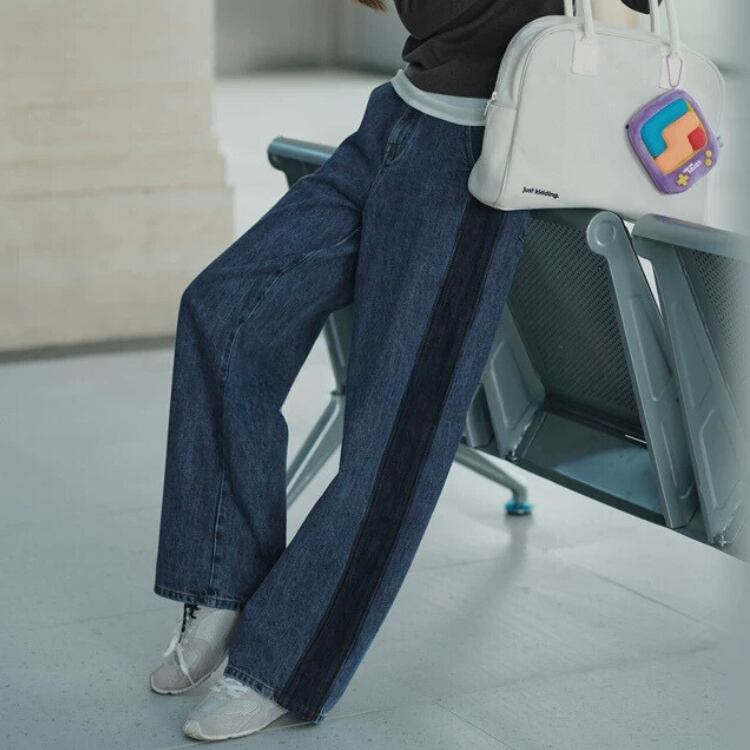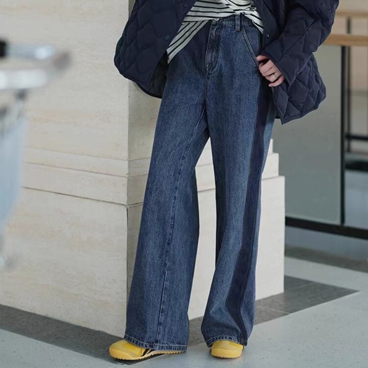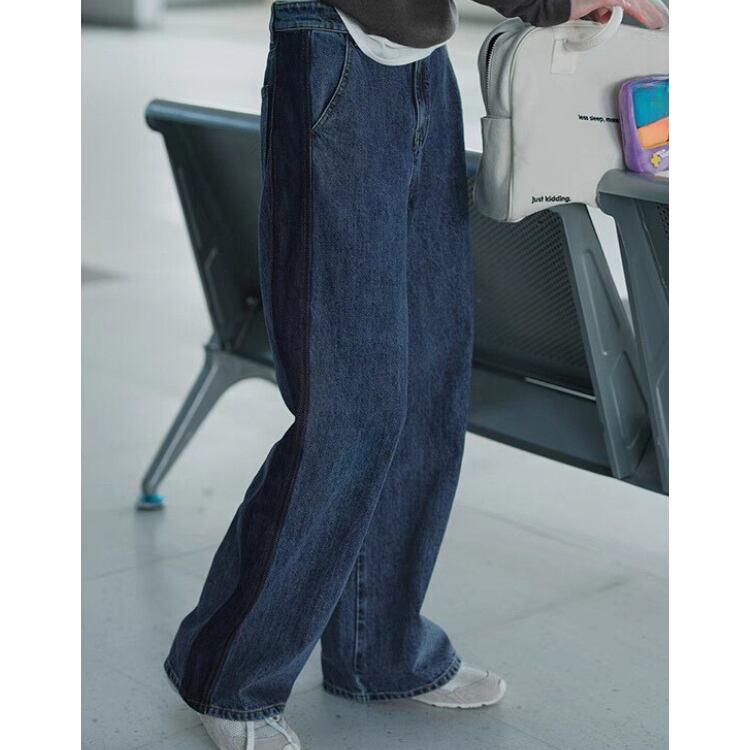 サイドラインデニムワイドストレートパンツ 0835
