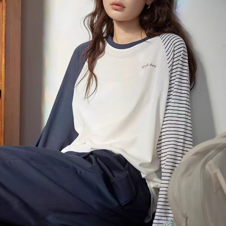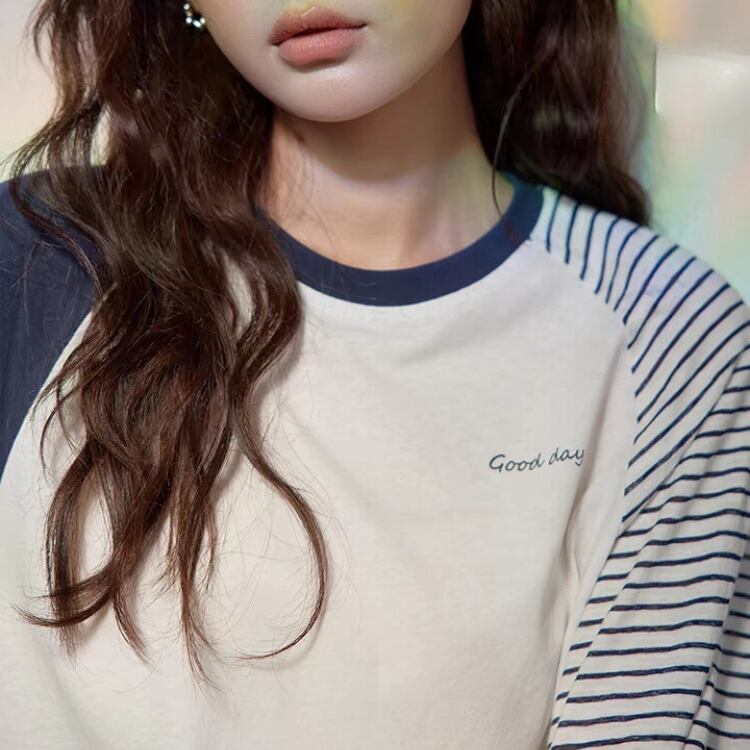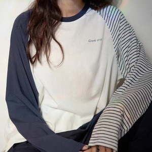 クレイジーパターンラグランスリーブワンポイントTシャツ 0854