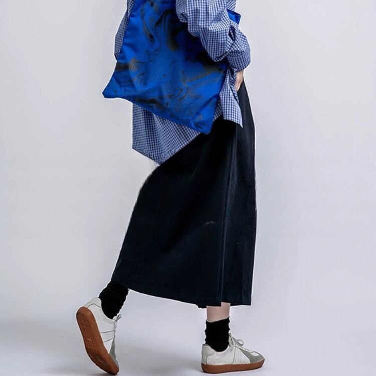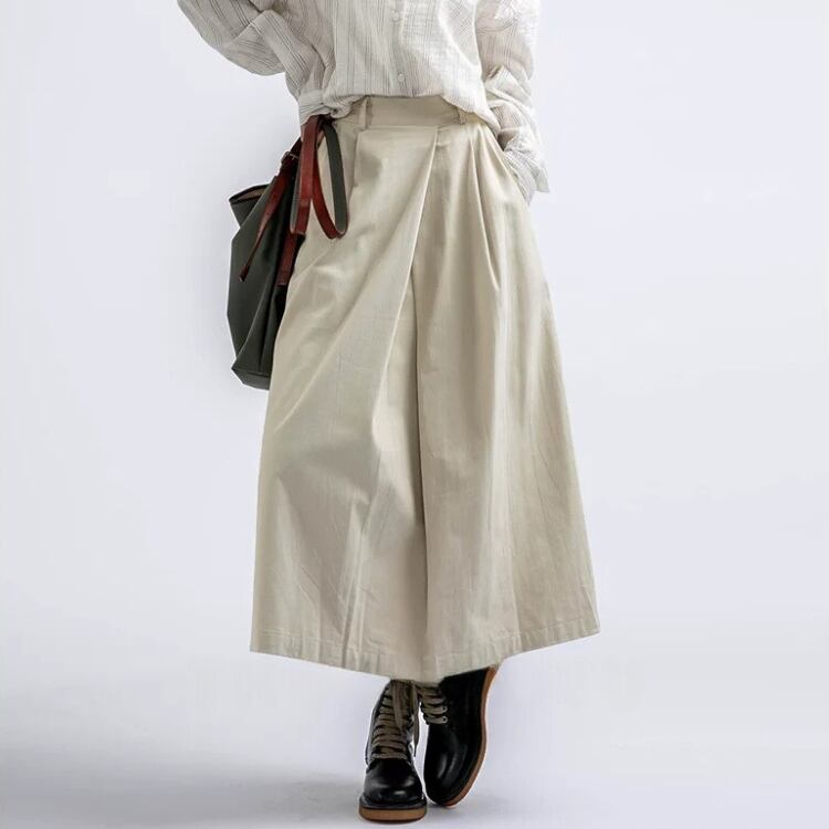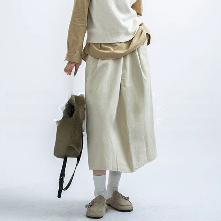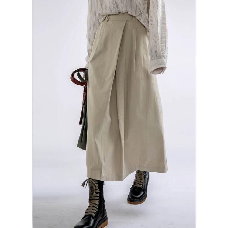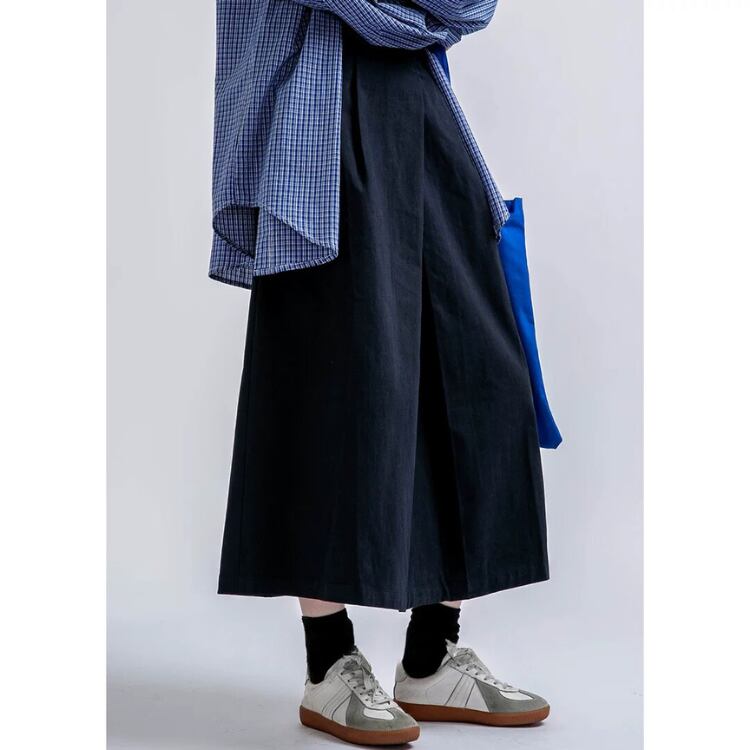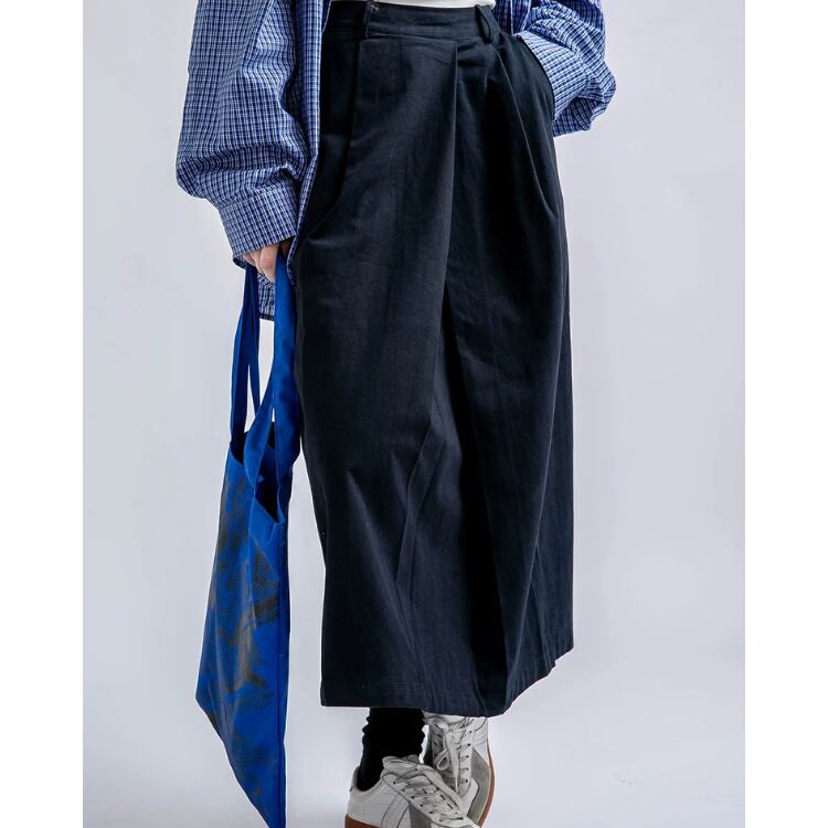フロント斜めボックスプリーツセミフレアースカート 0849