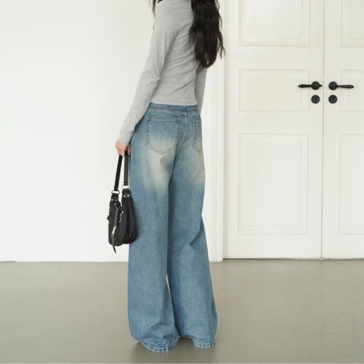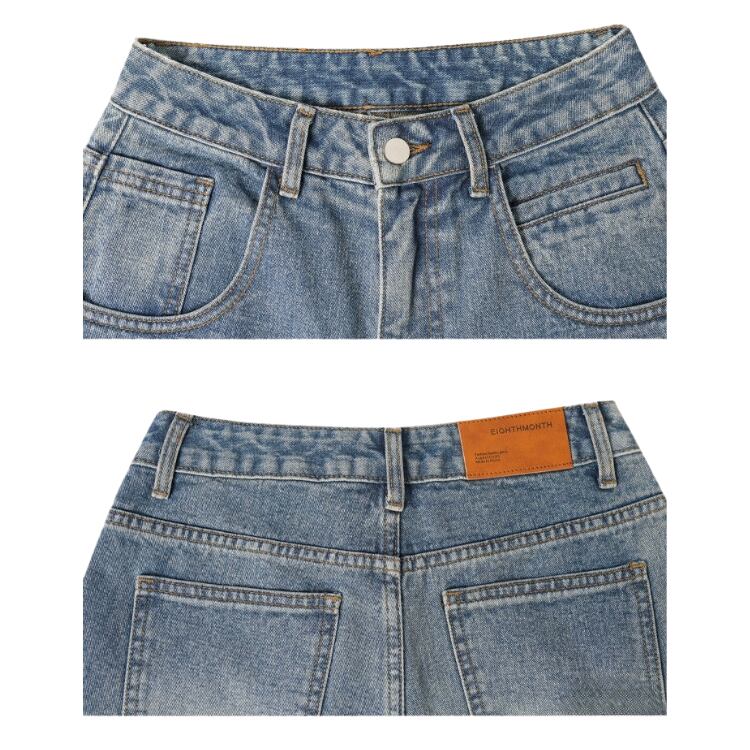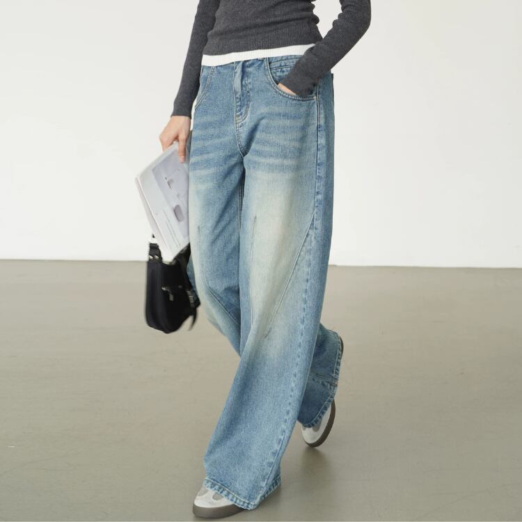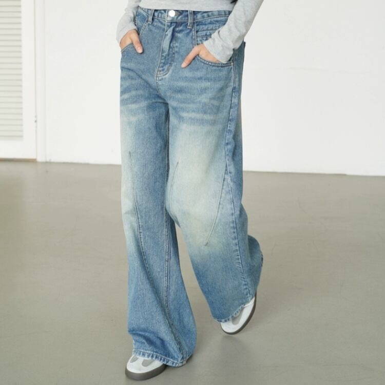 ウォッシュドデニムフロントダーツ入りワイドパンツ 0861