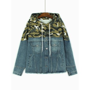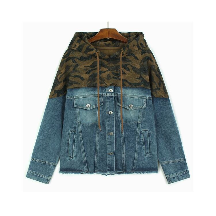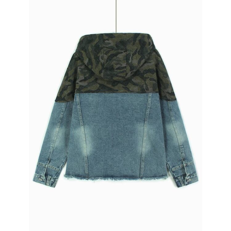 Gジャン配色裏毛迷彩柄フーディー 0876