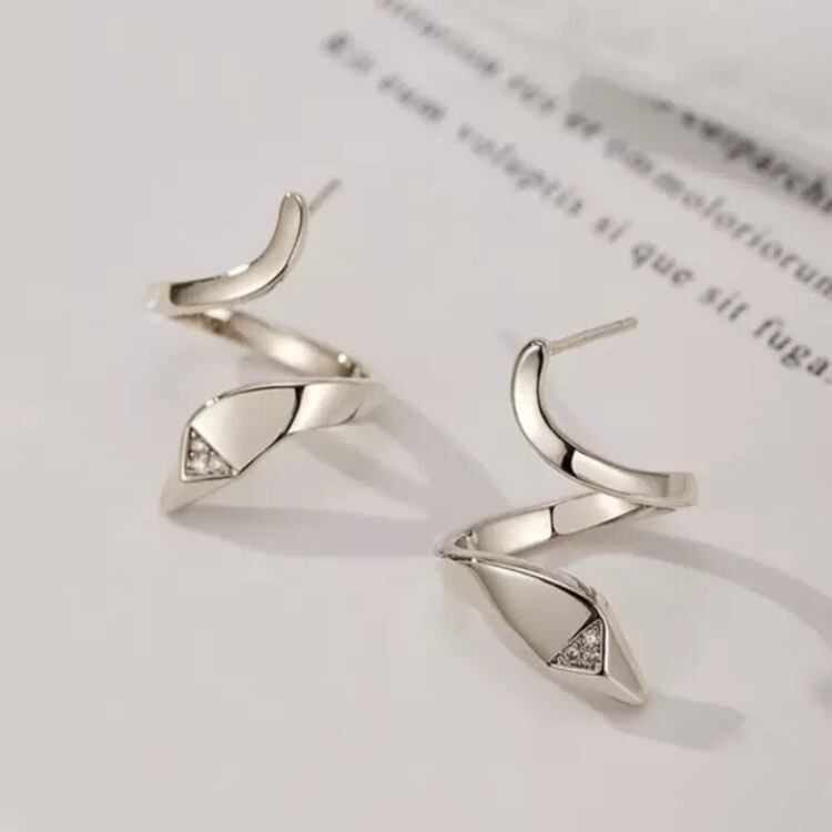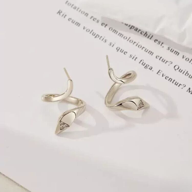ラインストーン付きスパイラルピアス 0880