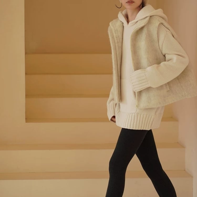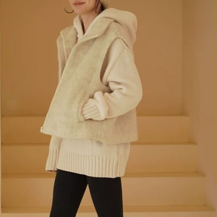 さらに、ミドルゲージのニット素材がしっかりとした暖かさを提供します。