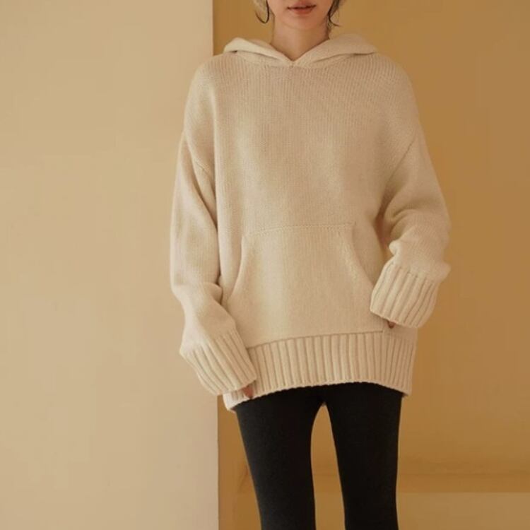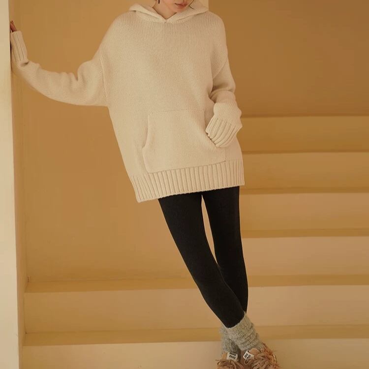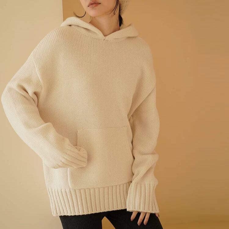 フロントポケットフード付きニット 0899