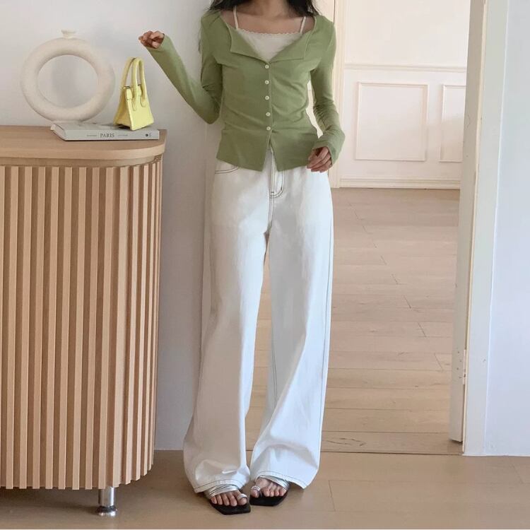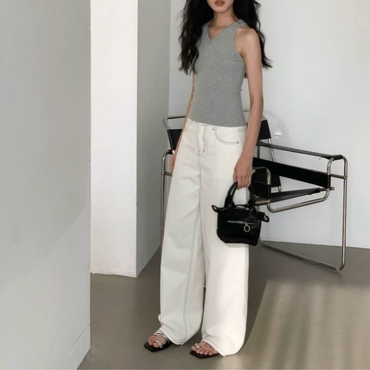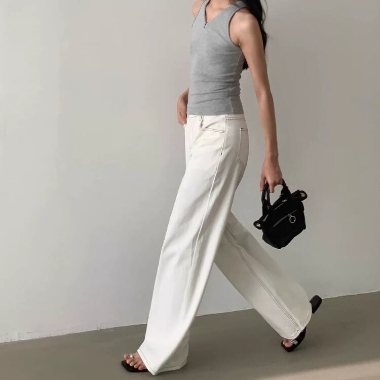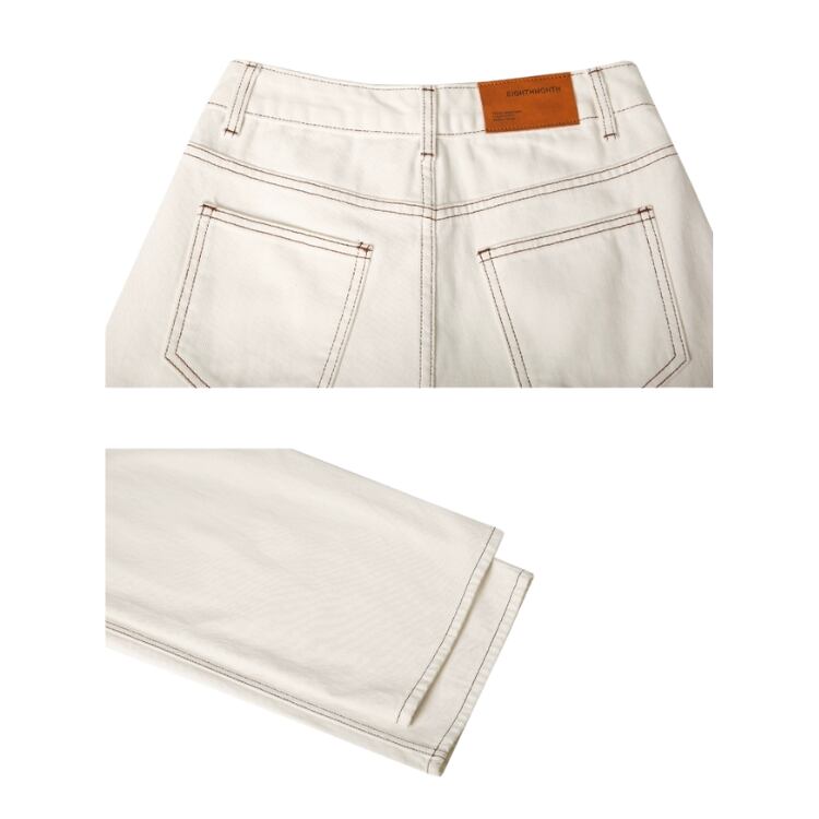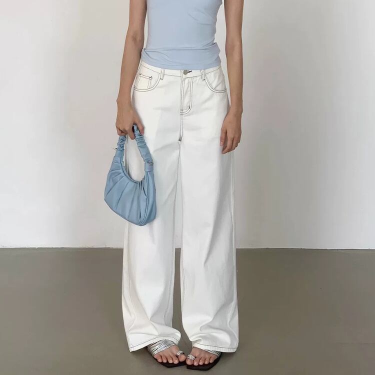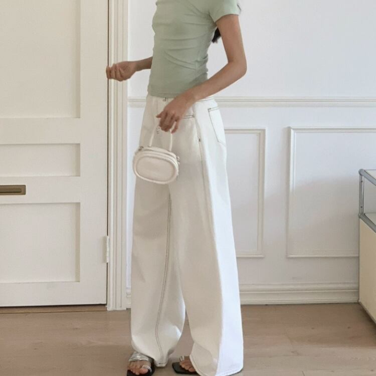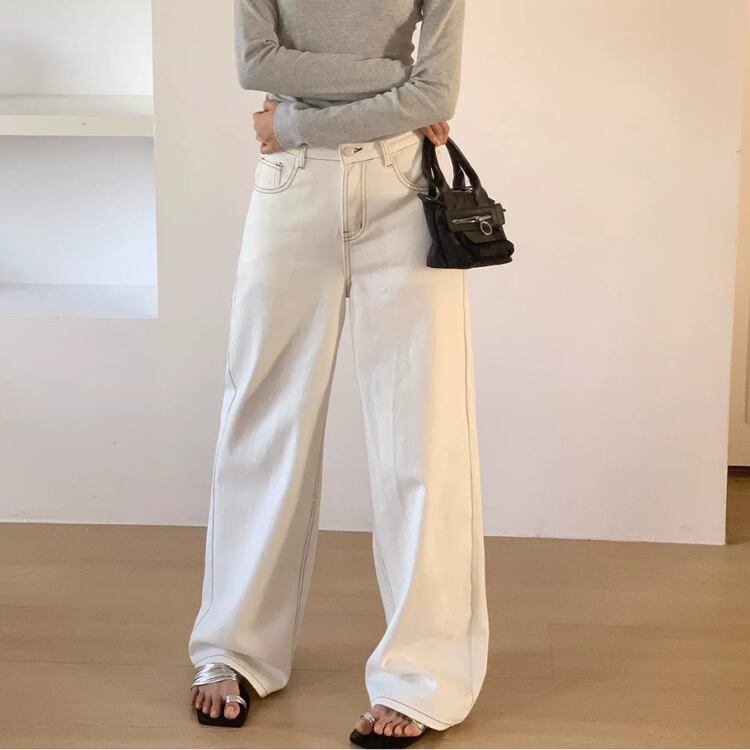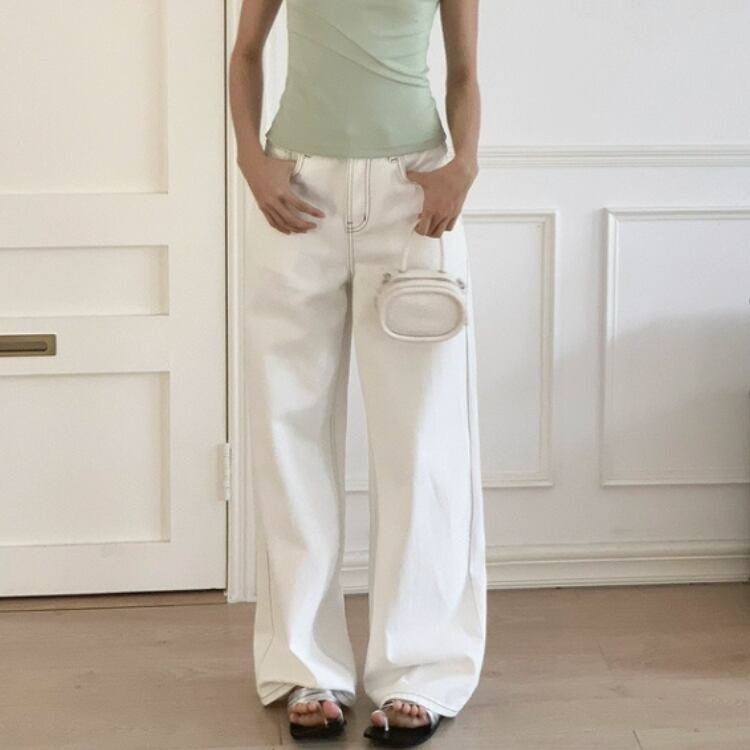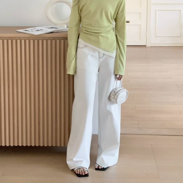 バイカラーステッチホワイトデニムワイドパンツ 0914