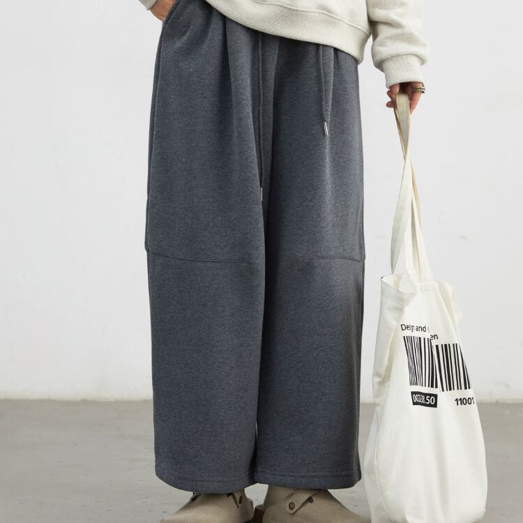 膝部分のサイドにタックを施した独自のデザインが魅力で、トレンド感を演出しながら、リラックスした着心地を提供します。