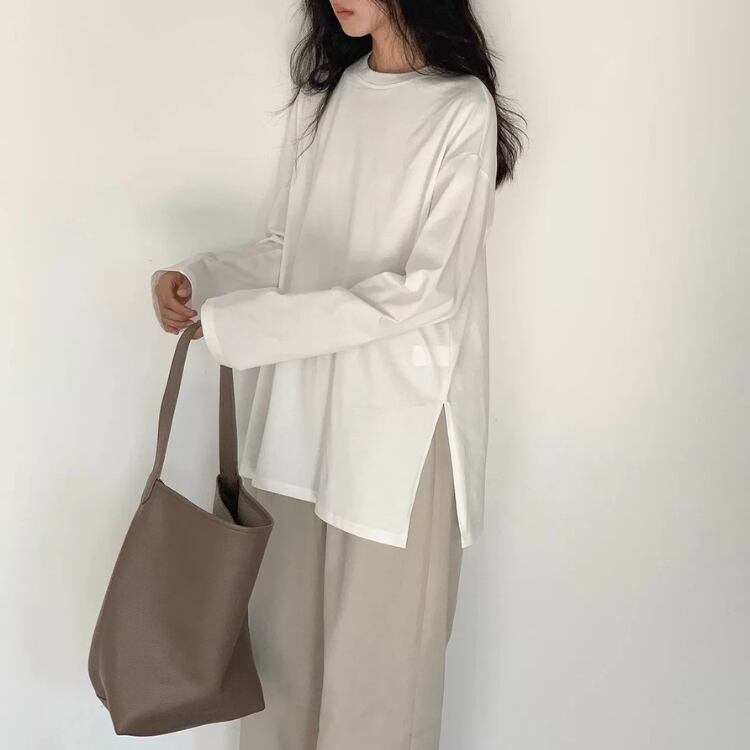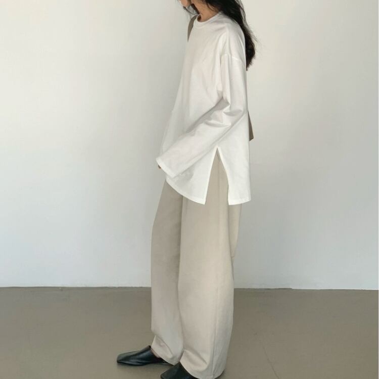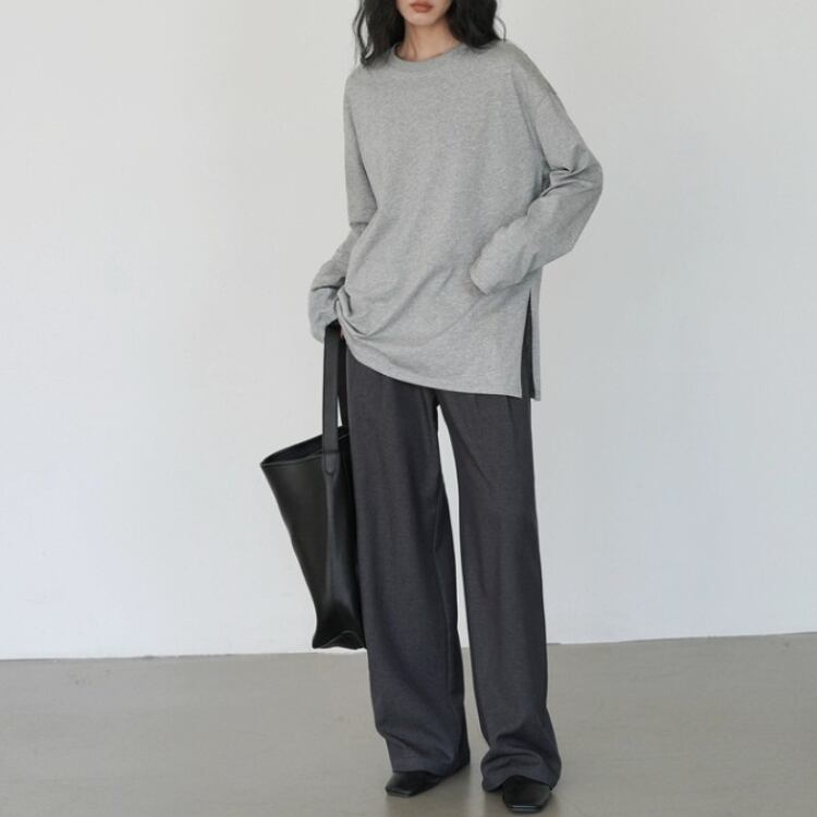 ワンサイドスリットオーバーサイズ長袖Tシャツ 0937