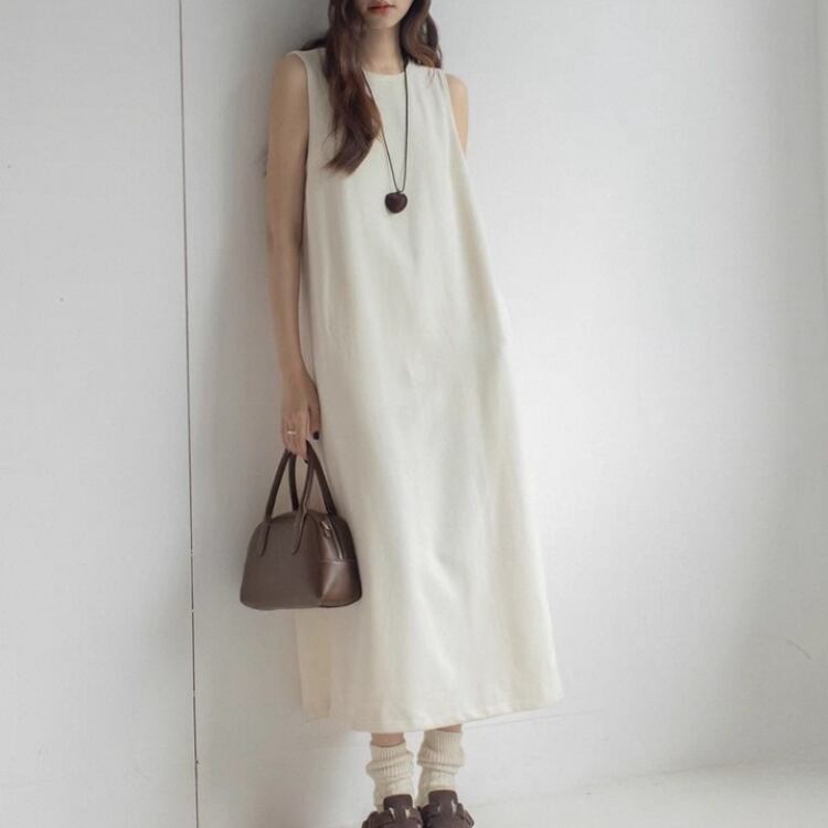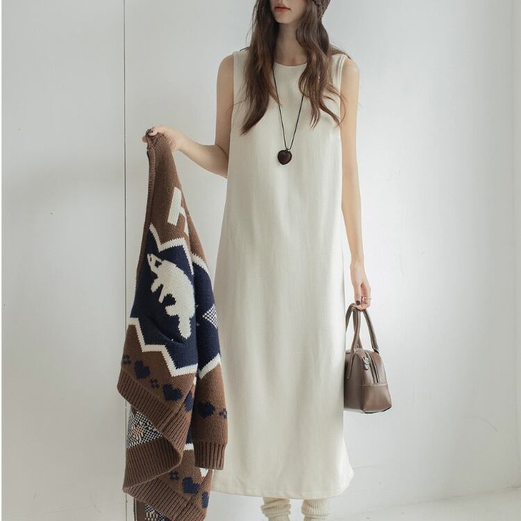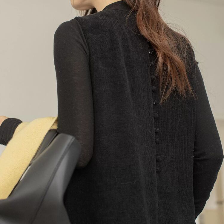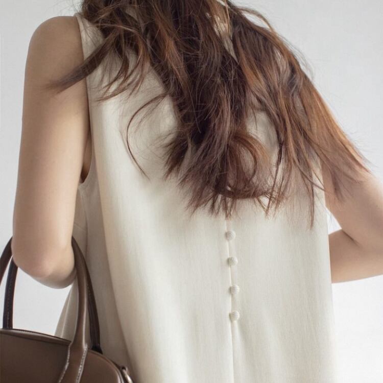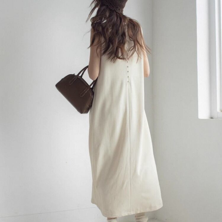 バックくるみ釦Aラインノースリーブワンピース 0920