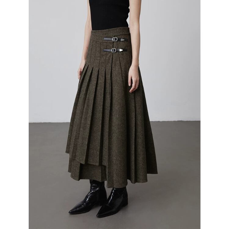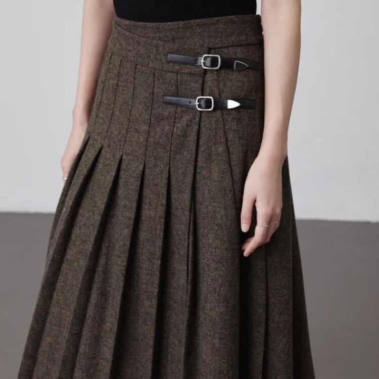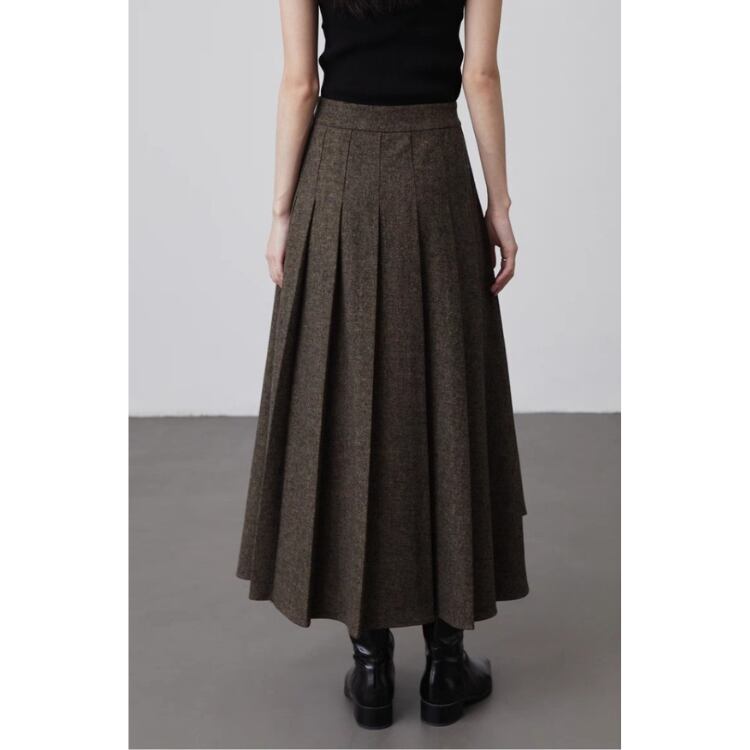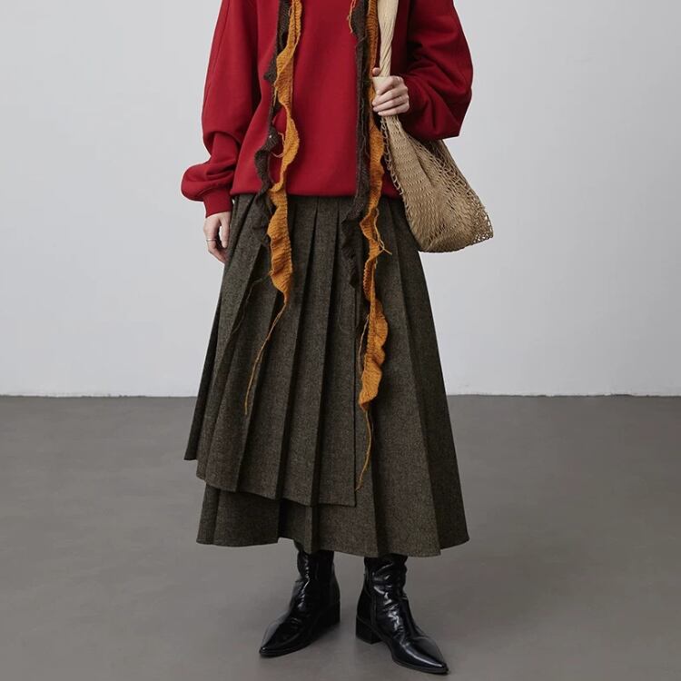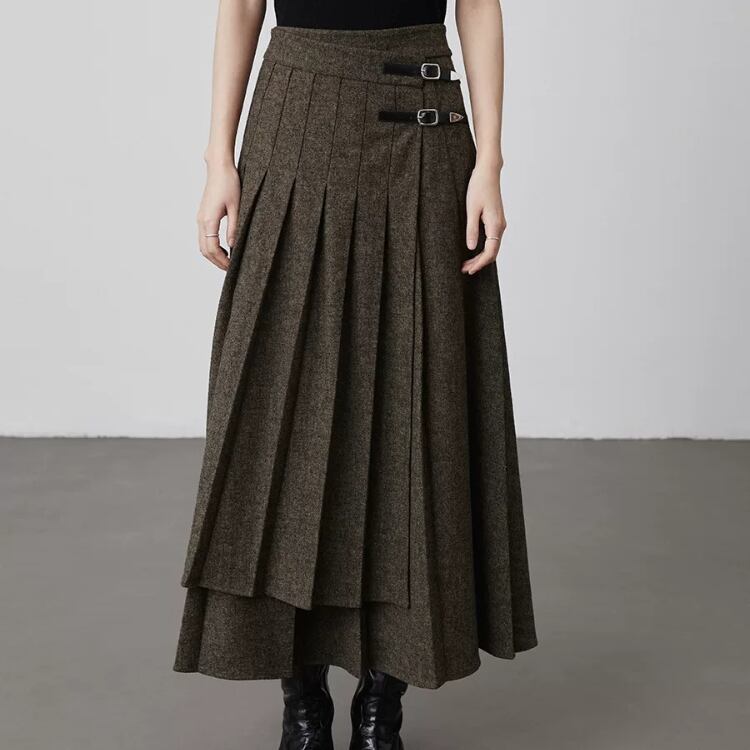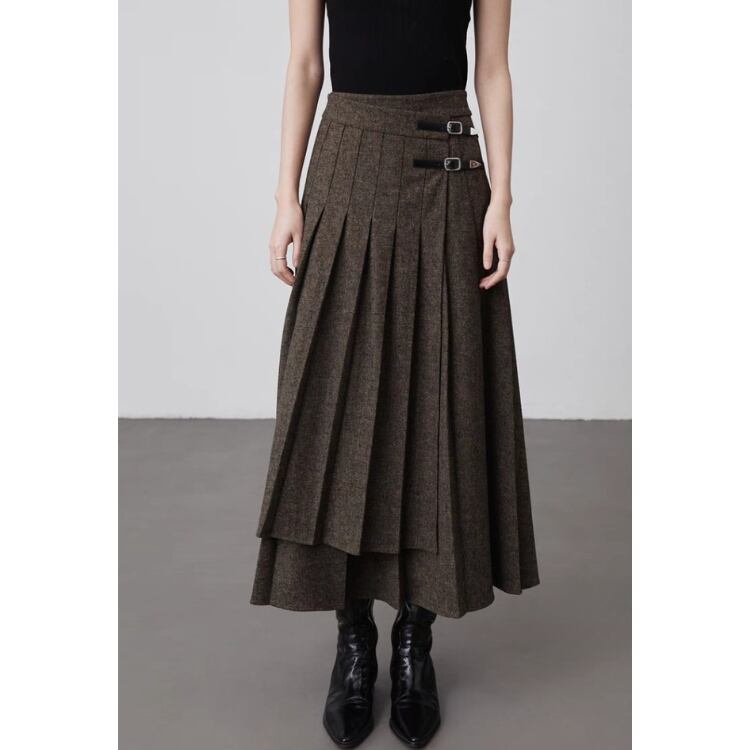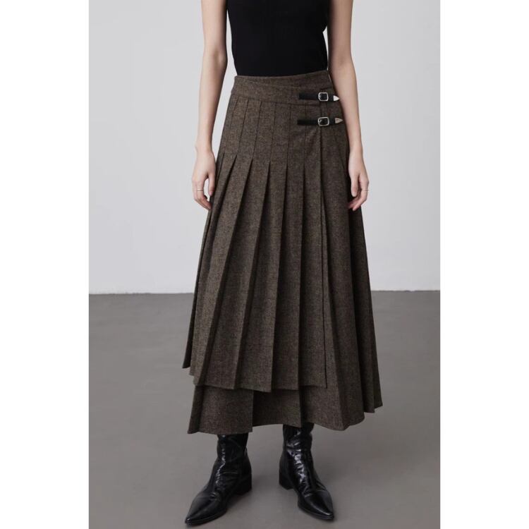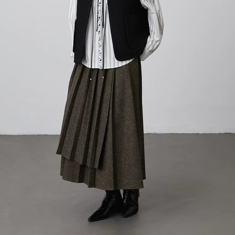 ツィード生地フロントラップレイヤードプリーツスカート 0924