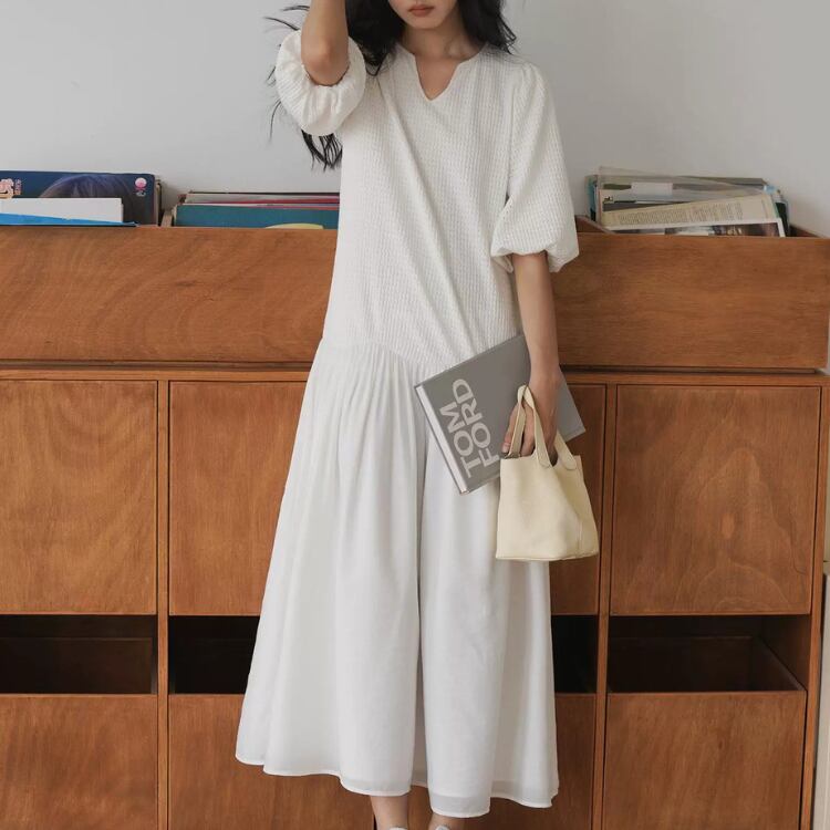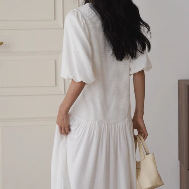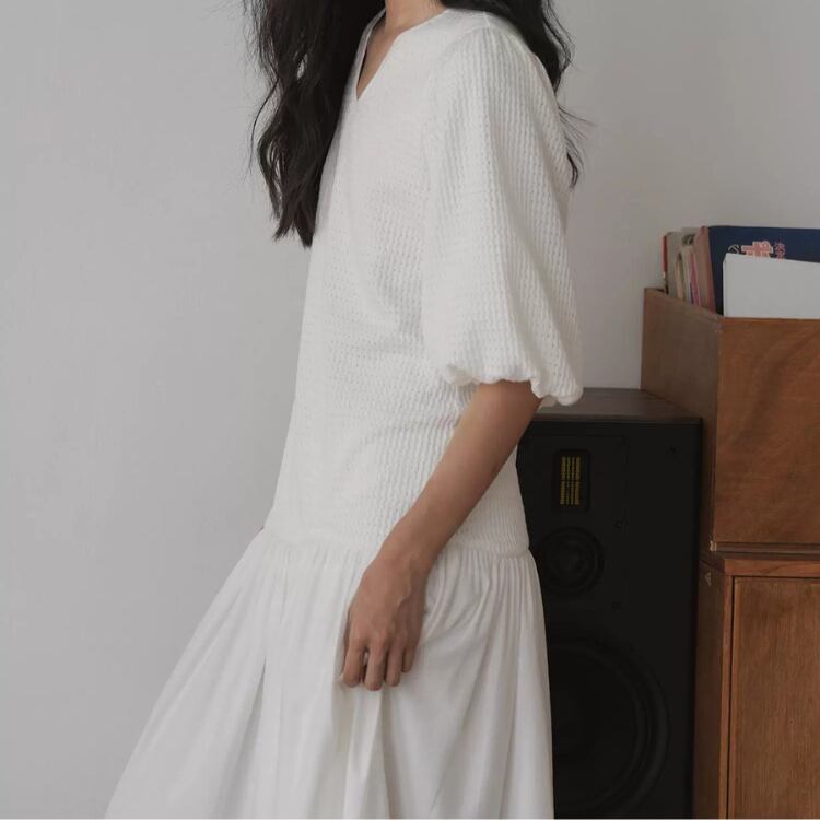 ジャガードキーネックローウエストシアー切り替えワンピース 0928