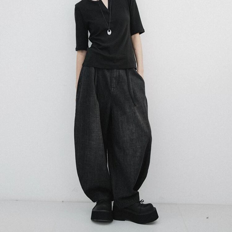 バレルラインブラックデニムパンツ 0934