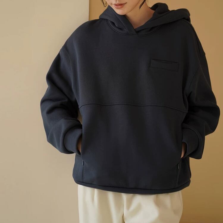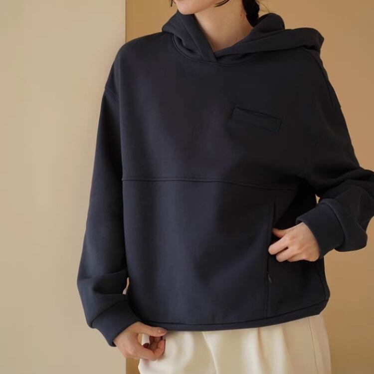 フロントの中央に切り替えがあり、ジッパー付きのポケットが配置されているため、スタイリッシュさを保ちながらも収納力もバッチリです。