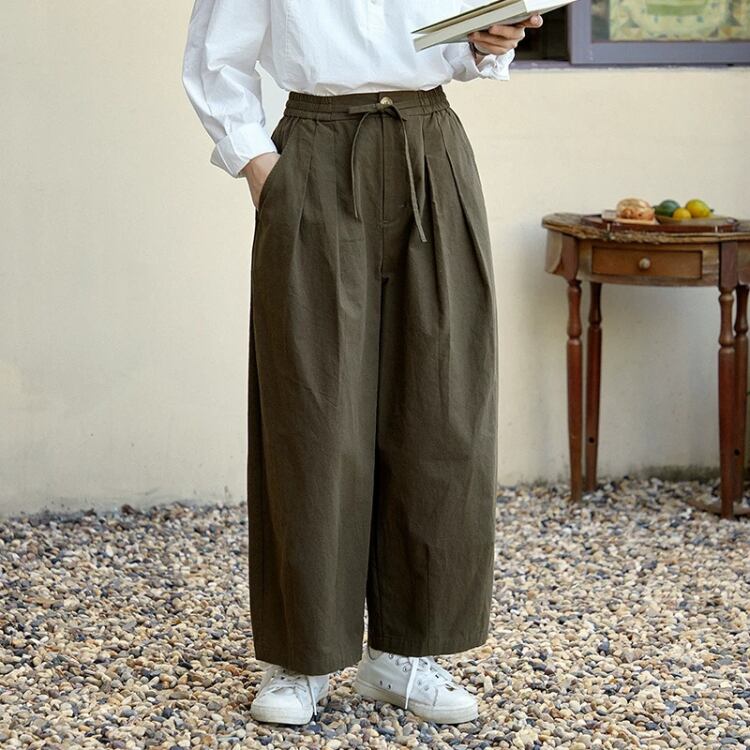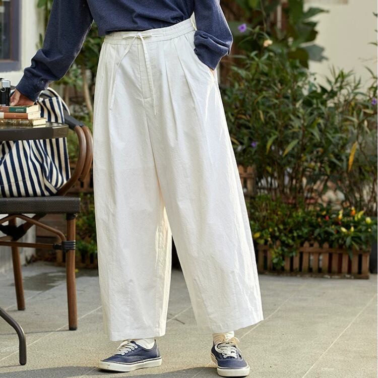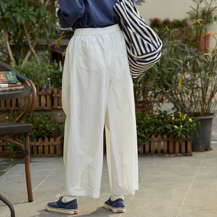 ウエスト部分にツータックを施し、ゴムを使用しているため、長時間着用しても快適さを保ちます。