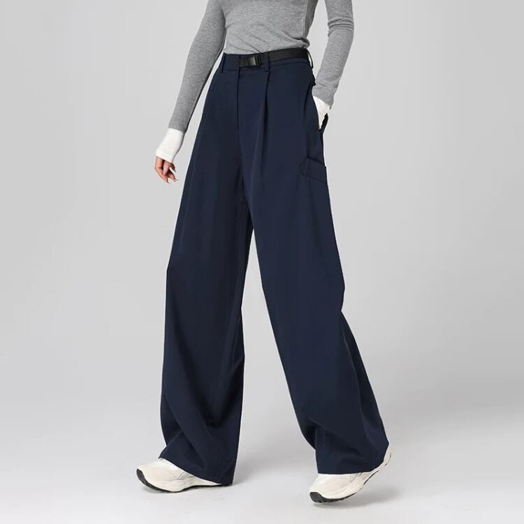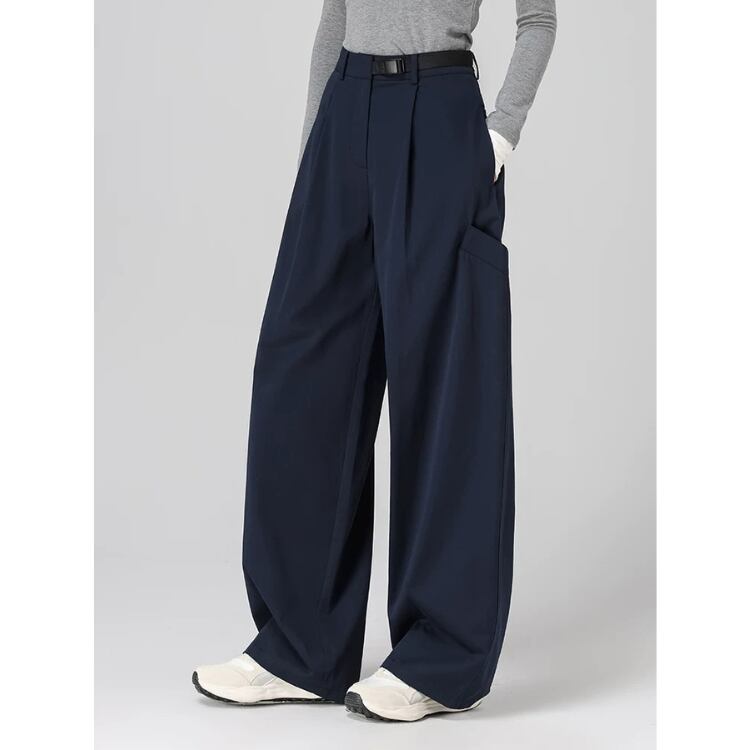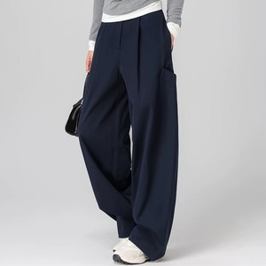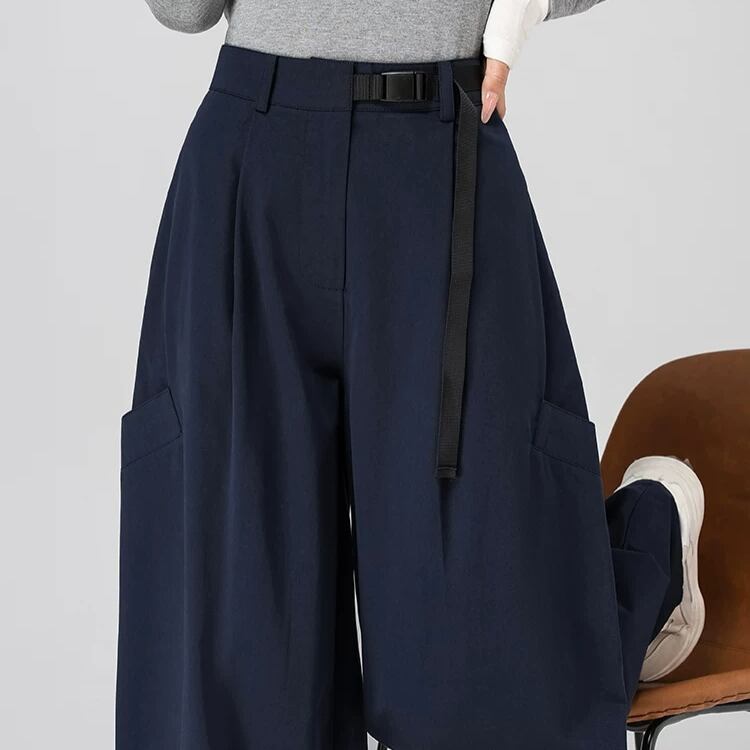 ウエスト片テープベルト付きワンタックサイド箱ポケットワイドパンツ 0950