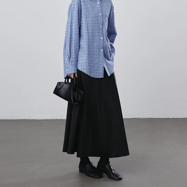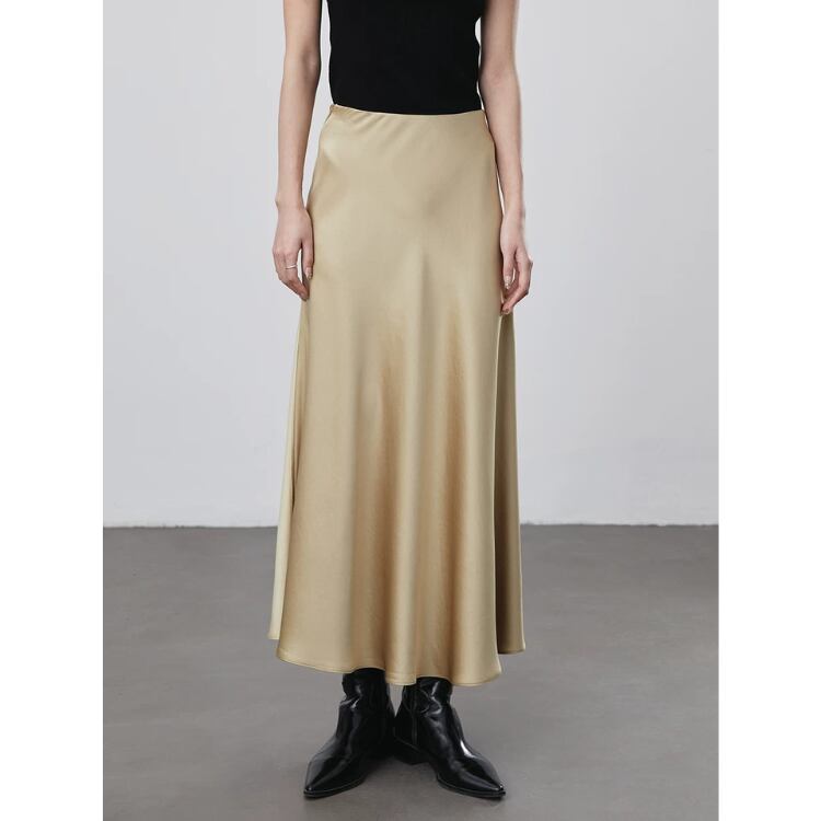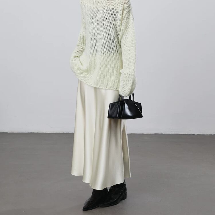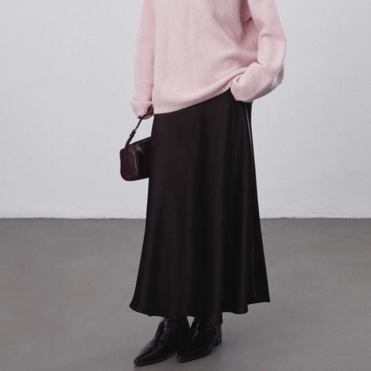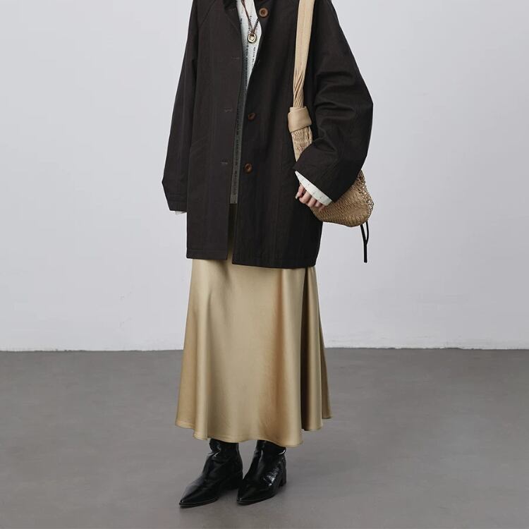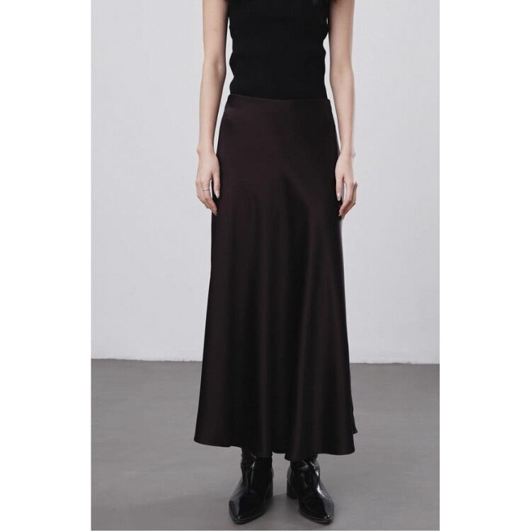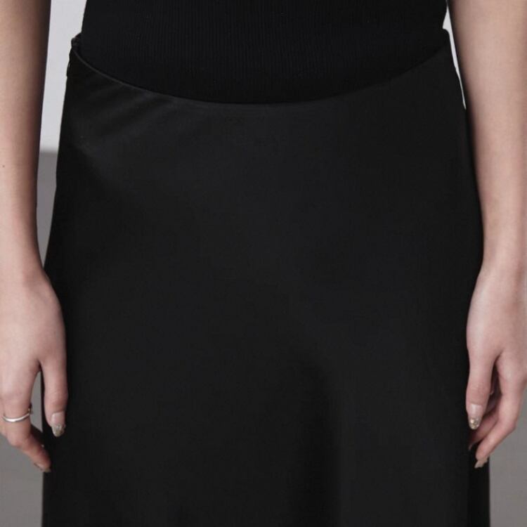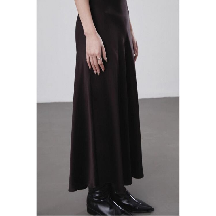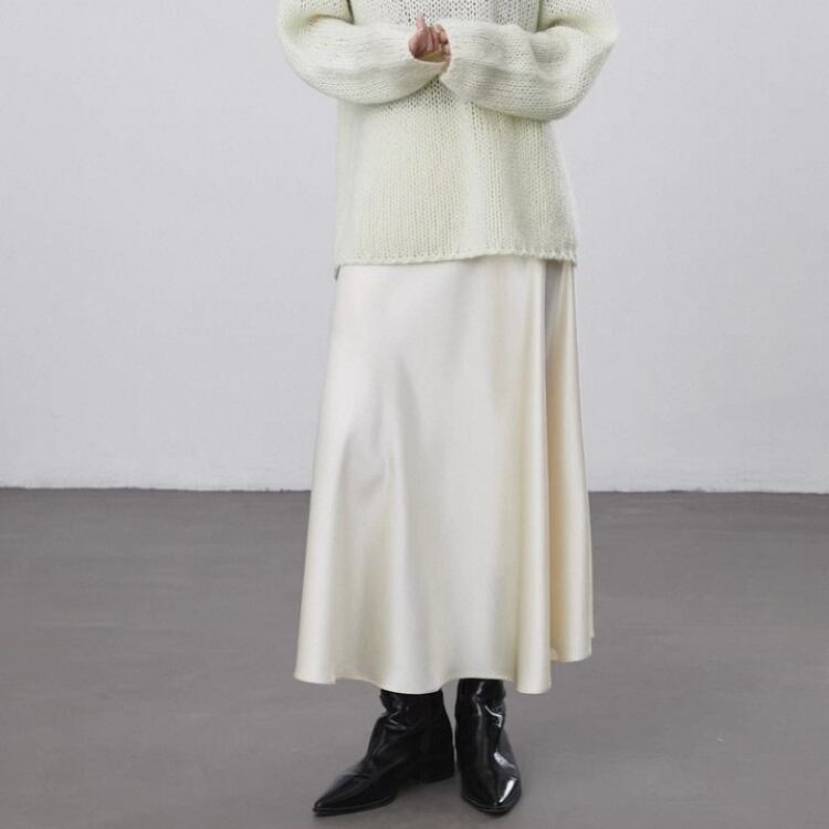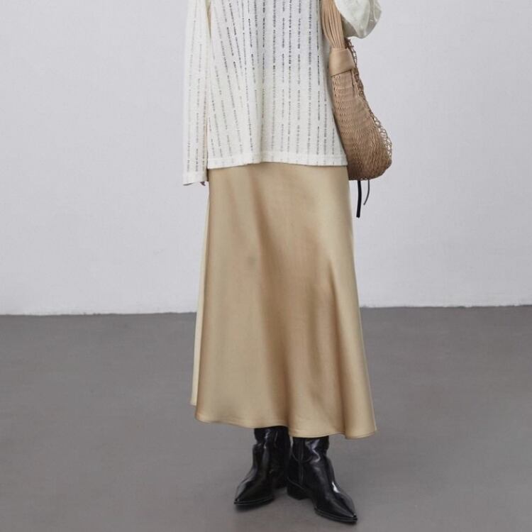 艶やかなサテン生地を使用したセミフレアースカートは、テロンとした落ち感で優美なシルエットを演出します。