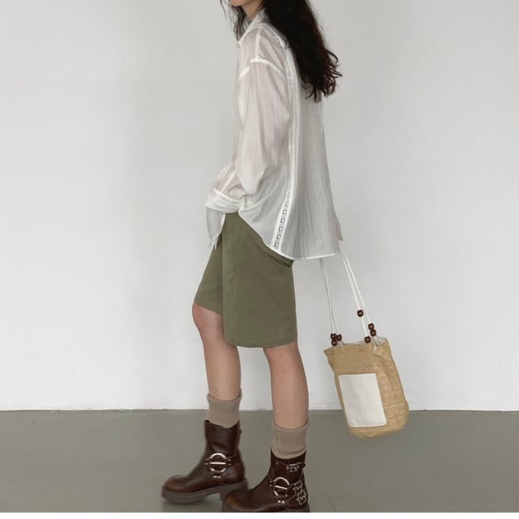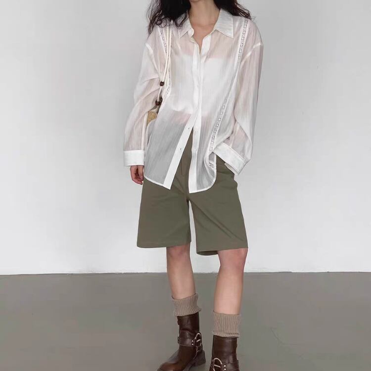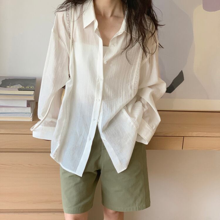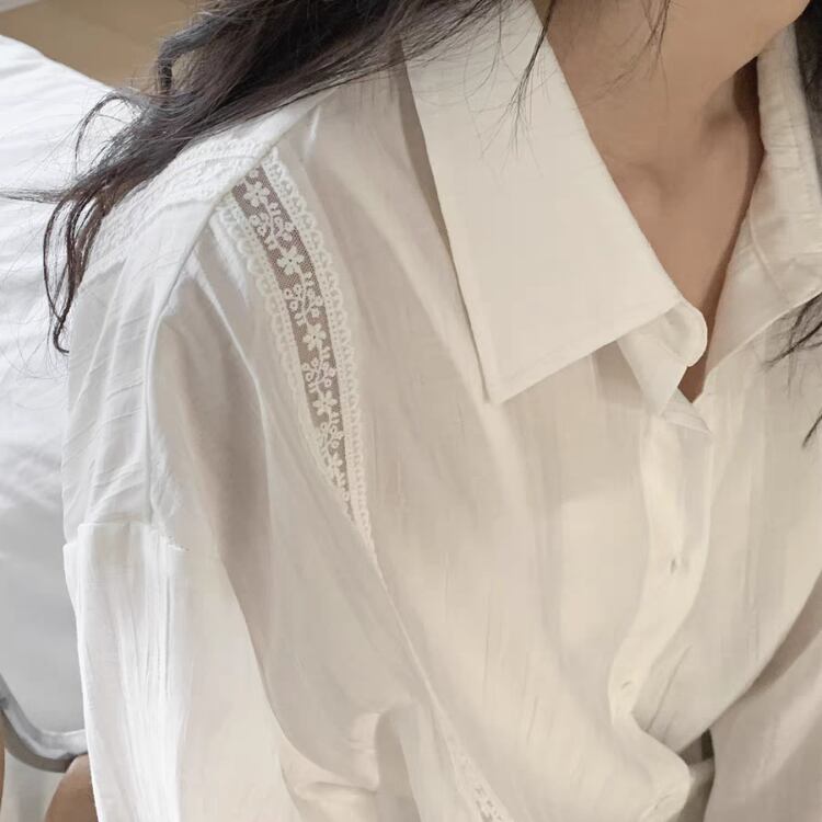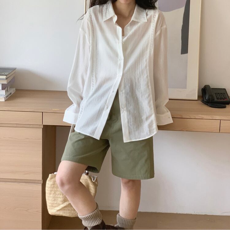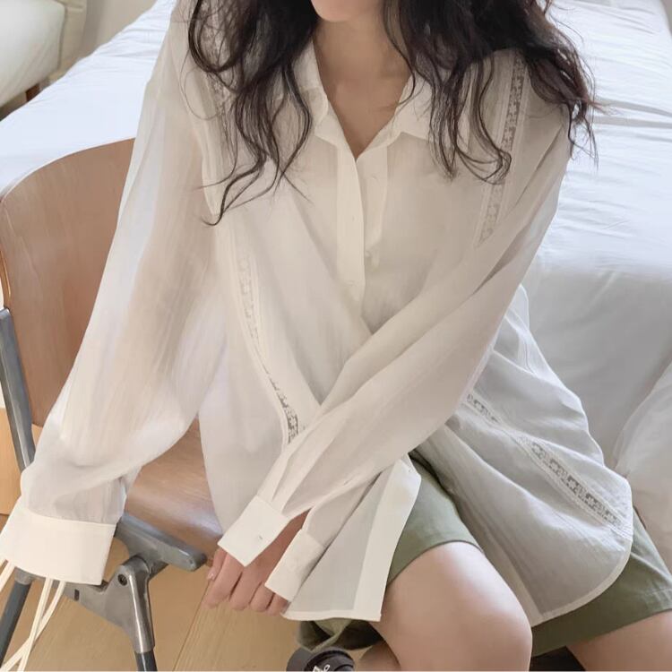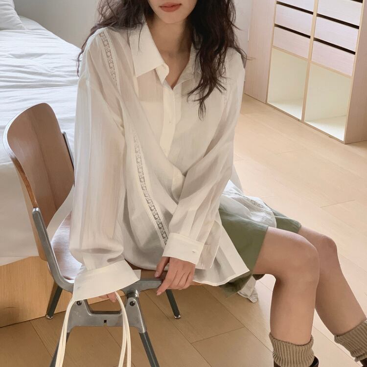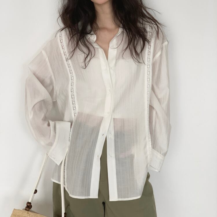 シアー生地フロントレース配色シャツ 0974