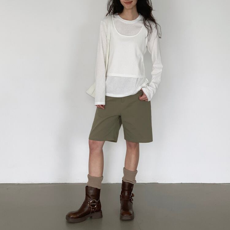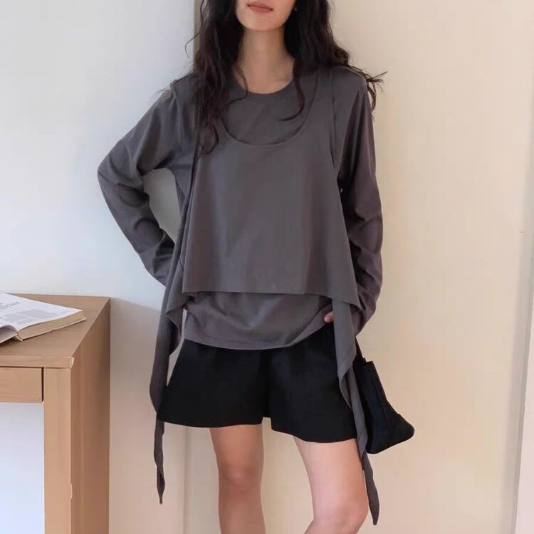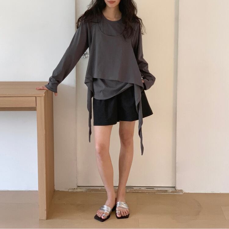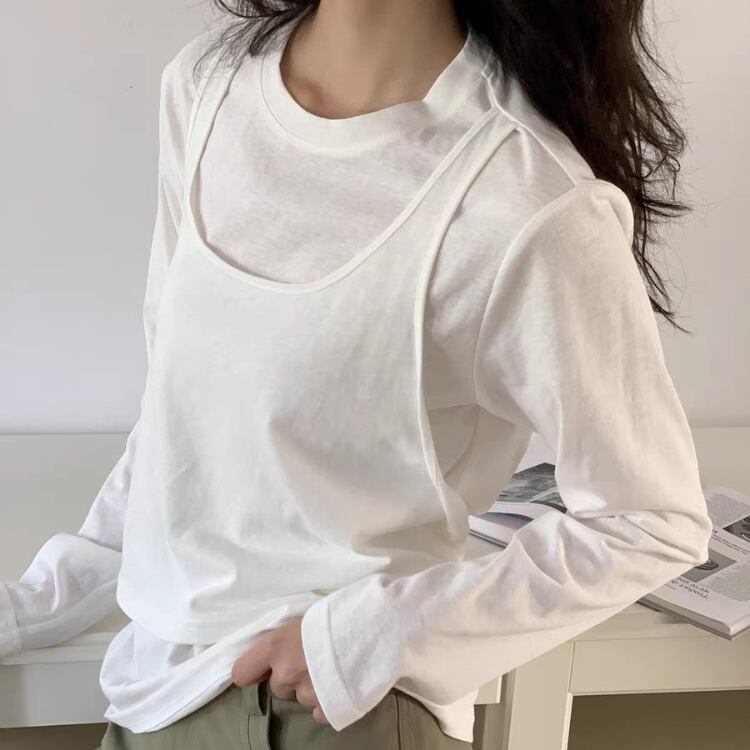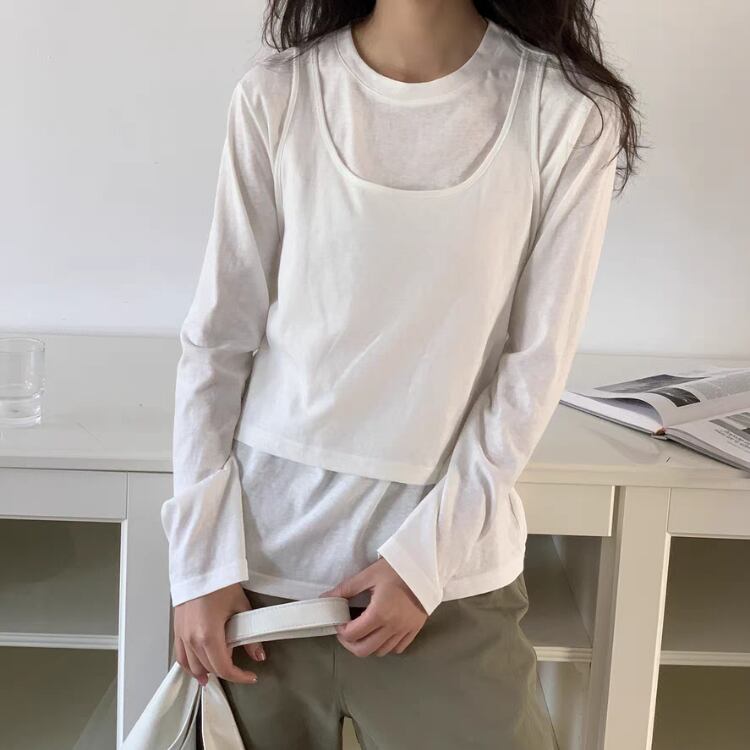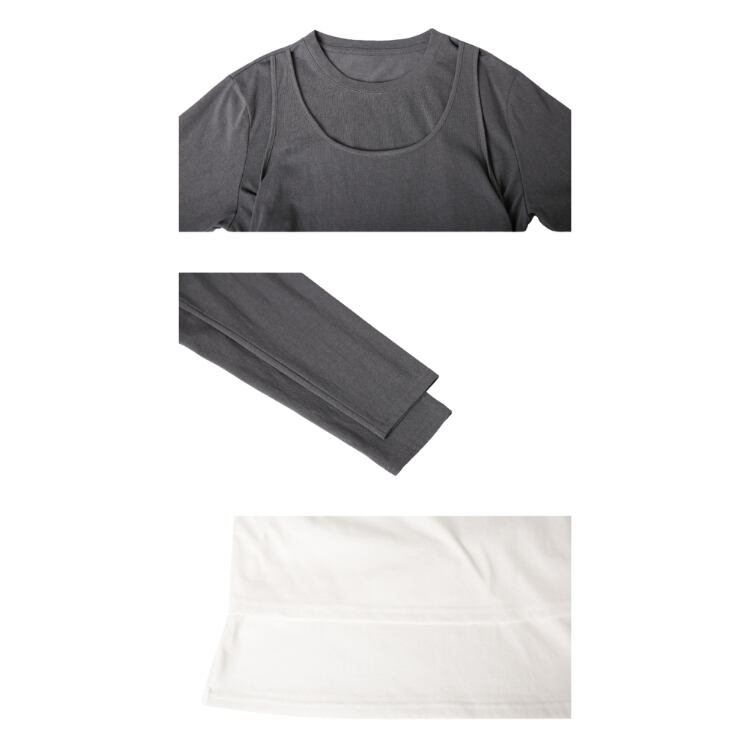 長袖Tシャツとタンクトップを組み合わせた、レイヤード風デザインのカットソーです。