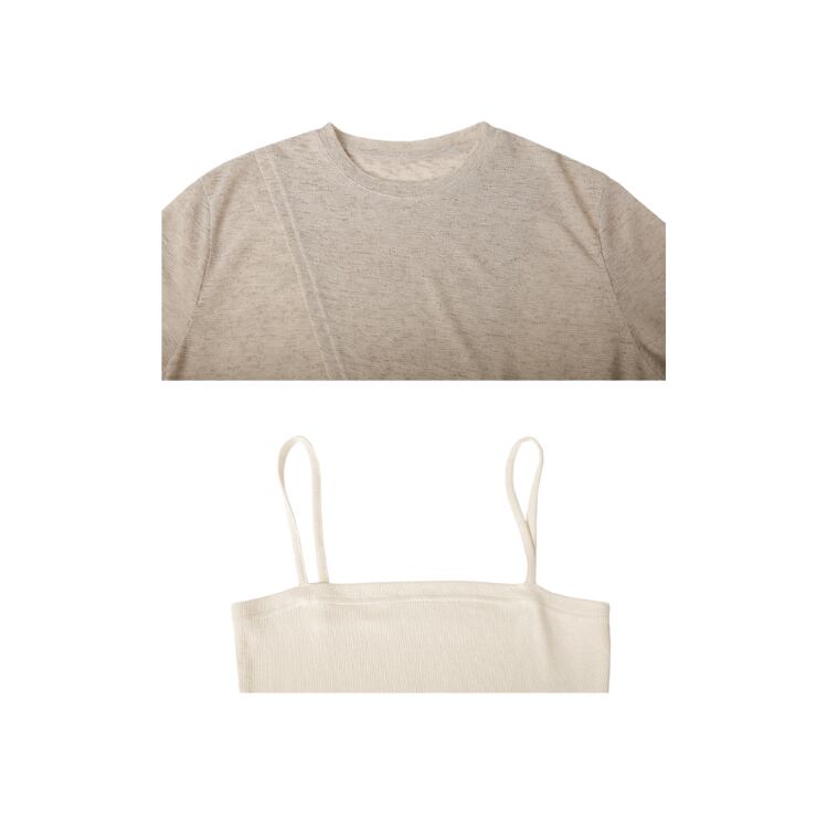 フロント斜めベントレイヤードカットソー&キャミソール 0968